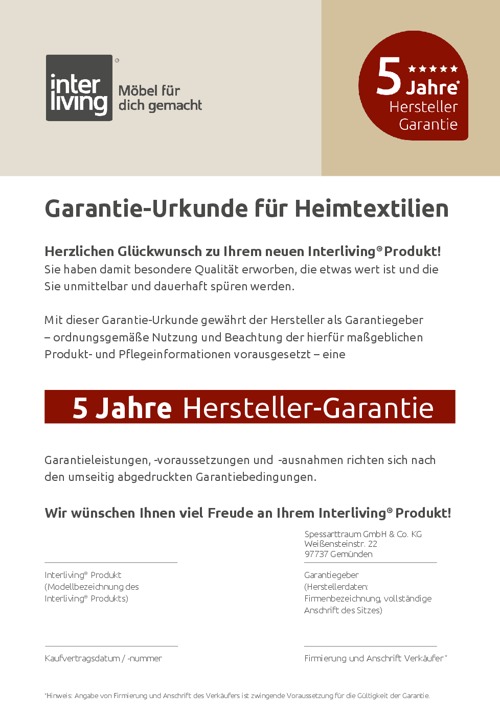 Alle Kissen der Interliving Kopfkissen Serie 9205 sind in verschiedenen Ausführungen erhältlich – so findest du garantiert das Modell, das optimal zu deinen Schlafgewohnheiten passt. Für ein harmonisches und luxuriöses Schlafsystem lässt sich das Kissen perfekt mit einer Bettdecke derselben Serie kombinieren. Die Bettwaren der Interliving Kopfkissen Serie 9205 werden klimaschonend in Deutschland hergestellt und kommen mit einer vom Hersteller gewährten 5 Jahre Herstellergarantie.