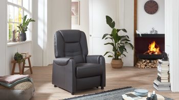 Dank der legeren Federkernpolsterung auf hochwertiger Wellenunterfederung im Sitz sowie der Schaumpolsterung im Rücken sitzen Sie auf dem Sessel der Ergonomiegröße M sehr bequem. Dazu tragen auch die verschiedenen elektrischen Funktionen bei. Der TV-Sessel bringt einen Motor mit. Dieser ermöglicht die synchrone, stufenlose Verstellung der Rückenlehne und des Fußteils von der Sitz- zur TV- und schließlich zur Liegeposition. Im komplett ausgefahrenen Zustand beträgt die Liegelänge ca. 177 cm. Mit der praktischen Fernbedienung lässt sich der Komfortsessel einfach steuern. Zur Aufbewahrung dieses nützlichen Zubehörs bietet das Möbel eine Seitentasche. Funktionsstark abgerundet wird der Sessel durch die elektrische Aufstehhilfe.