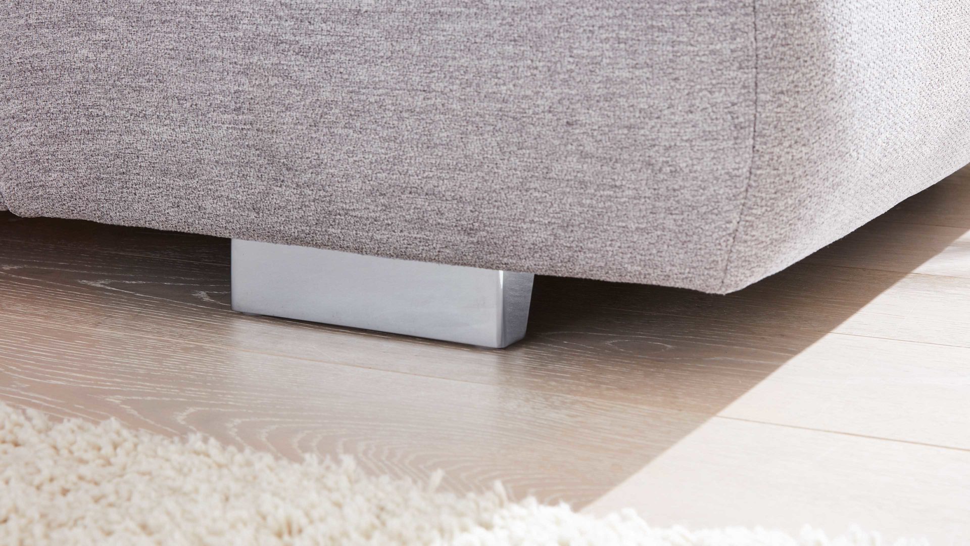 Sie kombiniert einen silberfarbenen Chenillebezug mit glänzenden Metallfüßen. Für erstklassigen Komfort sorgen der Sitz mit einer hochwertigen Federkernpolsterung, die auf einer optimal stützenden Wellenunterfederung gelagert ist, sowie der mit weichem Kaltschaum gepolsterte Rücken.