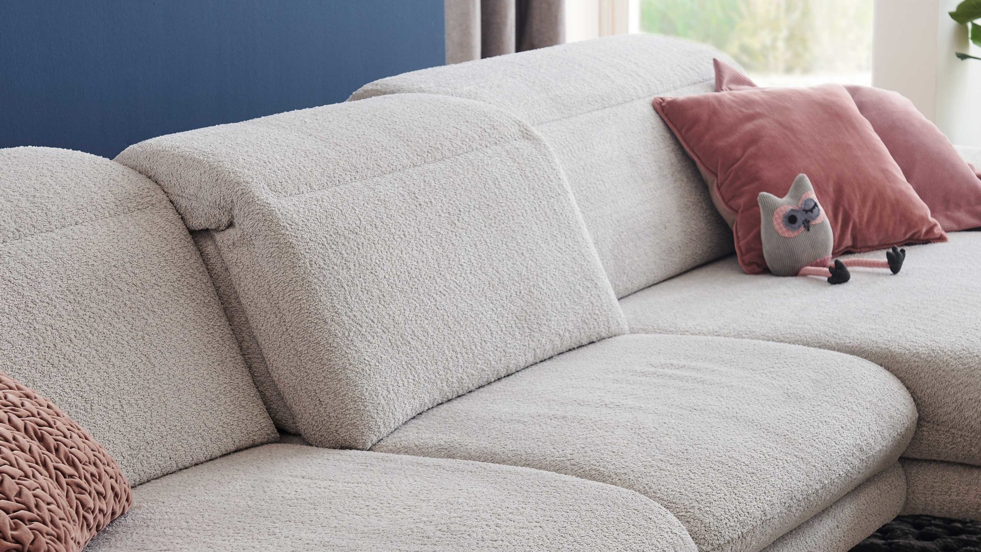 Das in allen Belangen überzeugende Modulmaster Polsterprogramm MM-MP1171 bringt mehrere Besonderheiten mit: Sämtliche Rückseiten sind im Originalstoff bezogen. Zu den Highlights gehören überdies die Bodenfreiheit, die zu einem angenehmen, offenen Ambiente beiträgt und den einwandfreien Einsatz eines Saugroboters ermöglicht und die Kopfteilverstellung bei allen Elementen mit Rückenlehne.