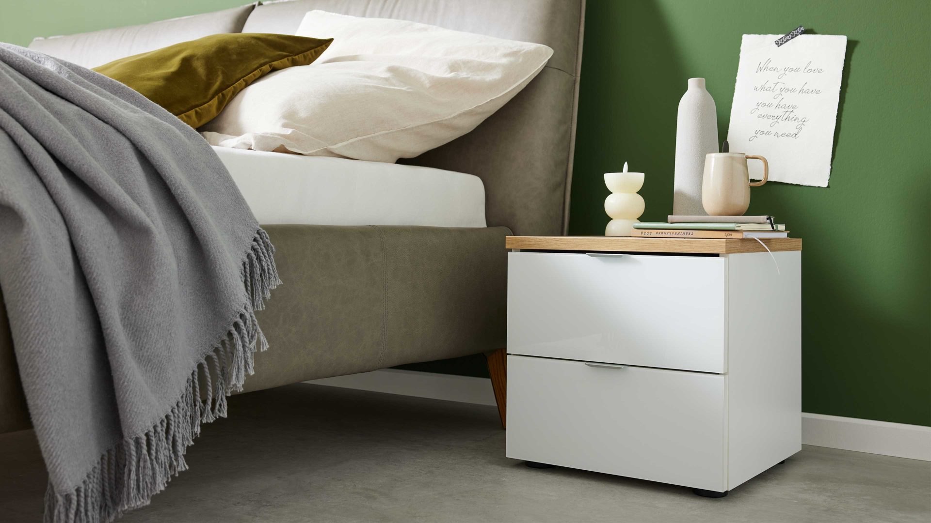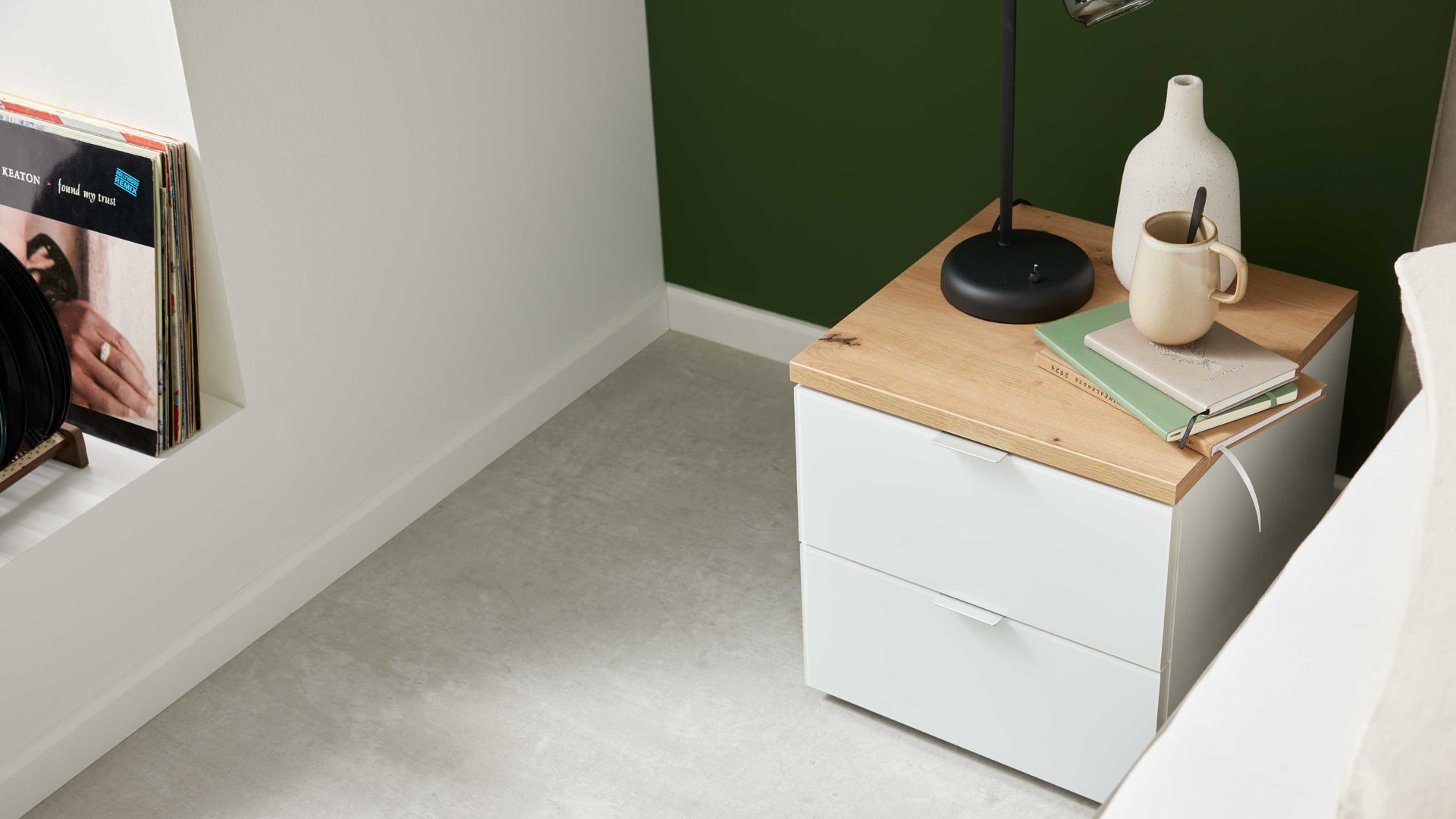 Nachtkommode aus der Interliving Kleiderschrank Serie 1208 – moderne Eleganz in Alpinweiß und Artisan-Eiche