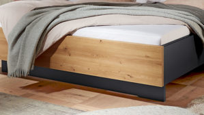 mattes Graphit, kombiniert mit biancofarbener Eiche Nachbildung und mattschwarzen Griffen