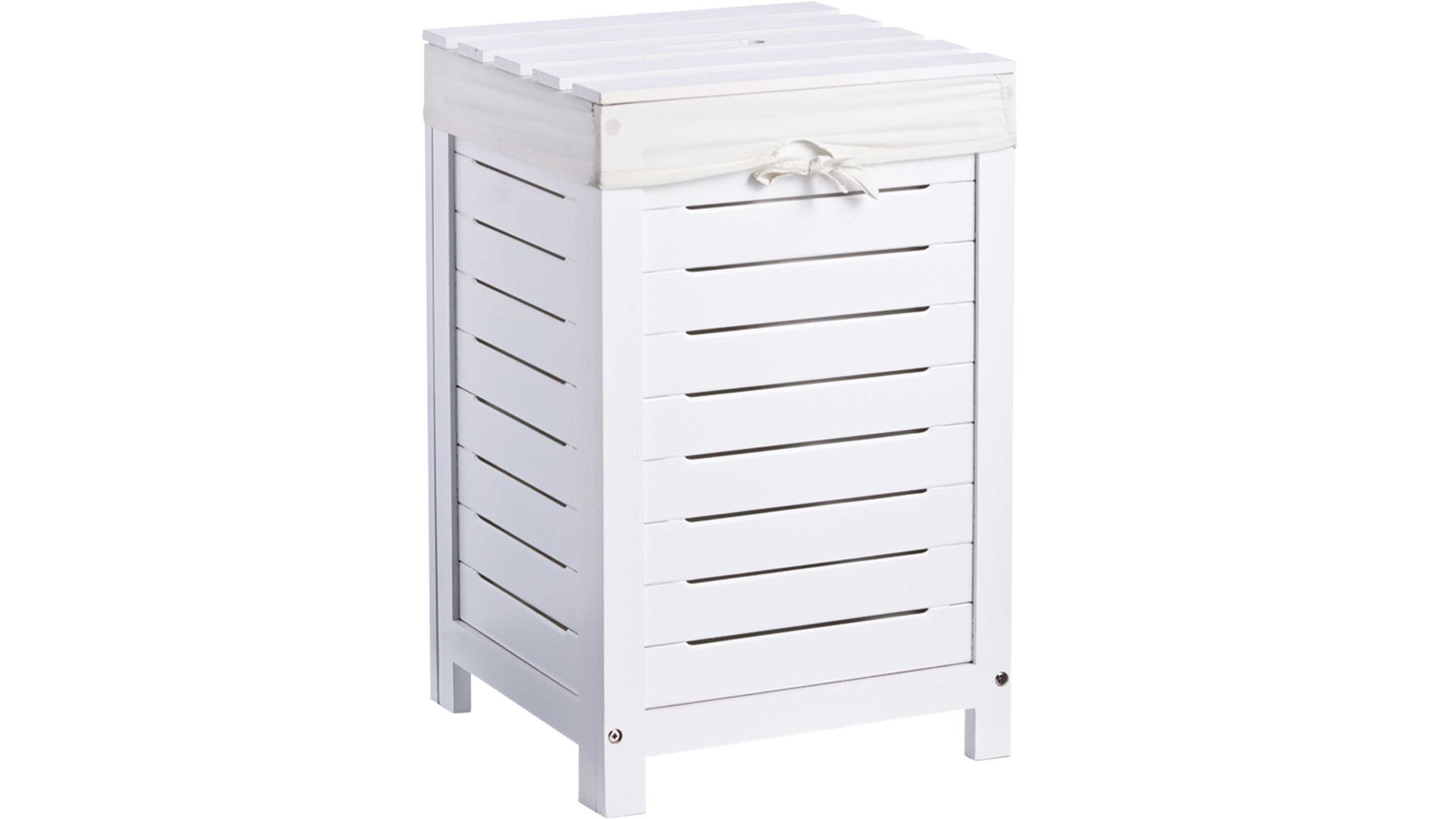 blomus Wäschesammler Frisco | hellgraue Kunstfaser | Aluminiumgriffe | aufklappbarer, geteilter Deckel | schmale Form | Maße ca. 45 x 70 x 28 cm (BxHxL) | in verschiedenen Farben bestellbar