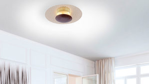 Über einen Wandschalter dimmen Sie die Deckenlampe zudem ganz nach Bedarf und Ihren individuellen Vorstellungen. Installieren Sie die formschöne Lampe, die einen Durchmesser von ca. 45 cm und eine Höhe von ca. 16 cm hat, in Ihrem Wohnbereich oder Schlafzimmer und kombinieren Sie sie mit weiteren Modellen dieser tollen Leuchtenserie, um einen einheitlichen Look zu erzeugen. Eine LED der Energieeffizienzklasse G (Spektrum A bis G) mit 18 Watt, 1400 Lumen und 3000 Kelvin ist bereits inbegriffen.