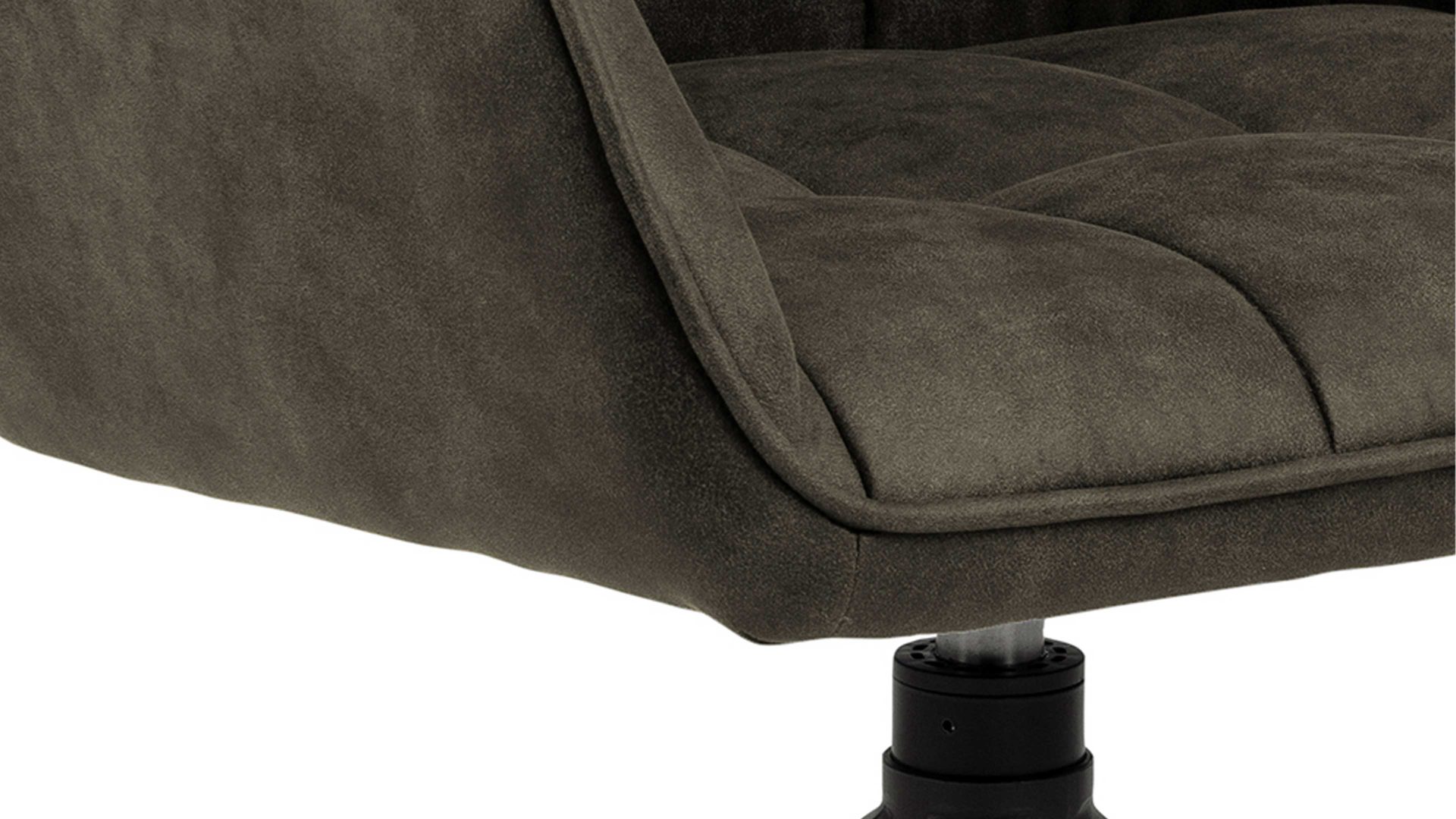 Dieser Armlehnstuhl verbindet ein modernes, elegantes Design mit einem besonders hohen Sitzkomfort. Darüber hinaus ist er hochwertig verarbeitet. Das mattschwarz pulverbeschichtete Metallgestell mit rauer Oberfläche sorgt für einen stabilen Stand und bildet auch optisch eine gelungene Basis für den Schalenstuhl. Als Highlight fungiert der feine Stoffbezug in trendigem Olivgrün. Die Steppnähte der Sitz- und Rückenfläche setzen einen attraktiven Akzent.