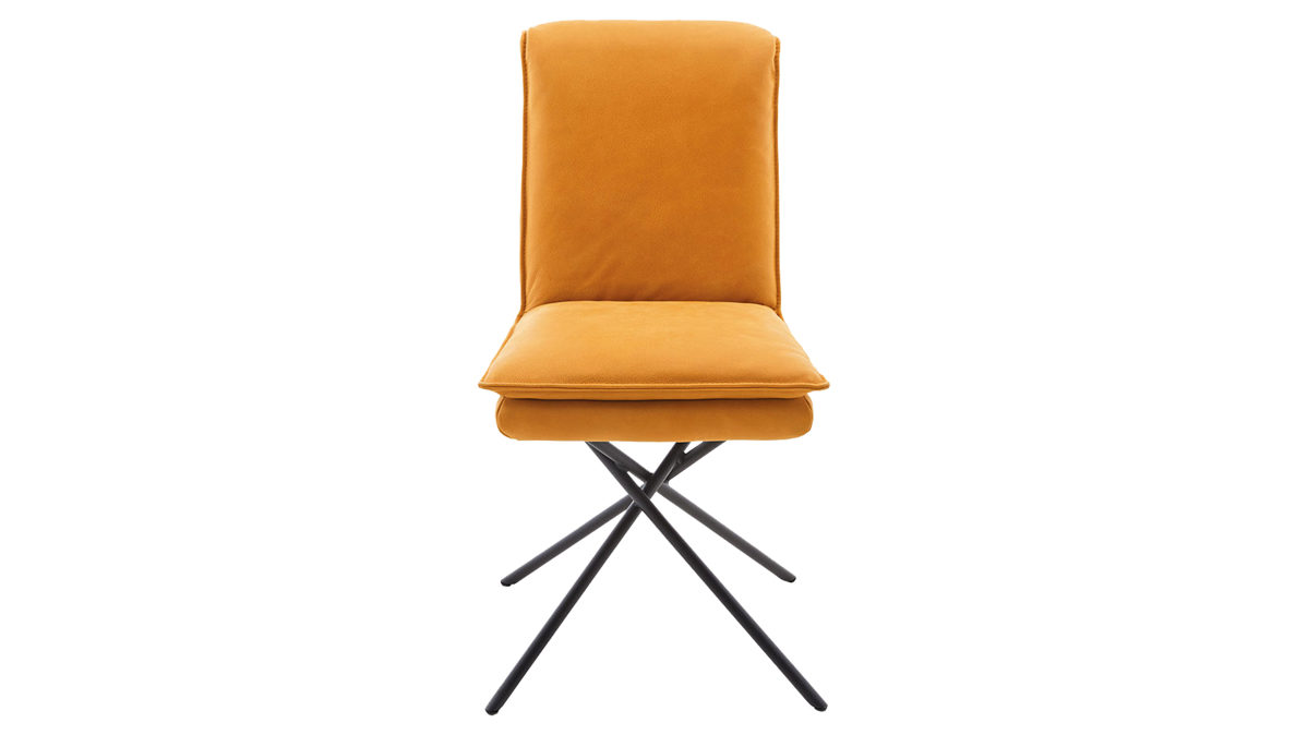 sonnengelber Lederbezug mit einer beigen Kontrastnaht und mattschwarzen Metallfüßen