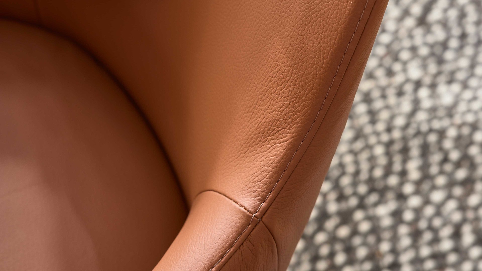 Der Armlehnstuhl aus der Interliving Esszimmer Serie 5115 kombiniert edles Design mit richtig gemütlichem Sitzkomfort. Der sattelfarbene Lederbezug wirkt warm, hochwertig und angenehm weich, während die rundum leger gepolsterte Sitzschale und die schlanken, gepolsterten Armlehnen für entspanntes Sitzen sorgen – egal ob beim schnellen Kaffee oder beim ausgedehnten Dinner.