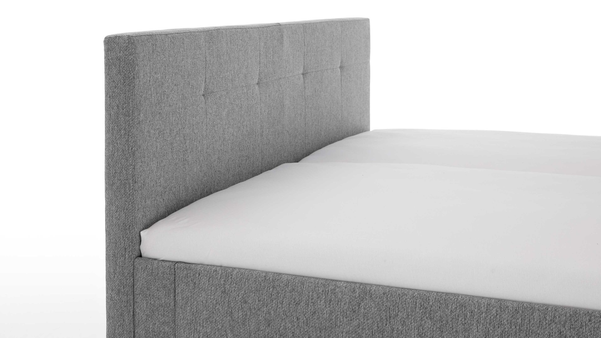 Das Polsterbettgestell Jazz ist gemütlich und stilvoll designt. Mit dem edlen grauen Stoffbezug und den eichefarbenen Holzfüßen strahlt es Eleganz mit einer Prise Natürlichkeit aus. Zu den Höhepunkten gehört das gesteppte Polsterkopfteil. Es verleiht dem Bett das gewisse optische Etwas und gibt Ihnen beim Lesen oder Fernsehen eine bequeme Anlehnmöglichkeit. Die Bettseiten sind glatt bezogen.