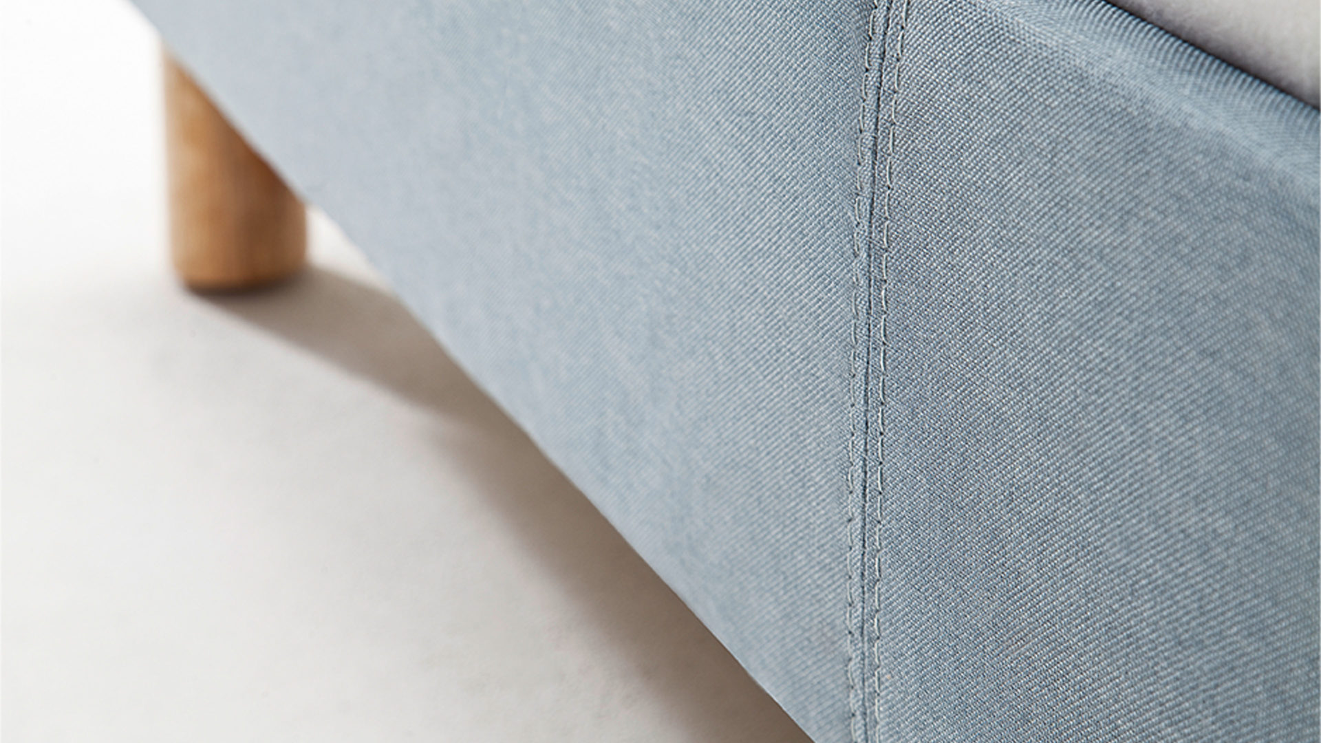 Mit dem edlen eisblauen Stoffbezug und den eichefarbenen Holzfüßen strahlt das Polsterbettgestell Lena frische Eleganz mit einer Prise Natürlichkeit aus. Sowohl die Bettseiten als auch das bequeme Polsterkopfteil sind glatt bezogen, was den gemütlichen Charakter des Bettes unterstreicht. Das angenehm weiche Kopfteil ist beispielsweise beim Lesen oder Fernsehen als praktische Rückenlehne nutzbar.