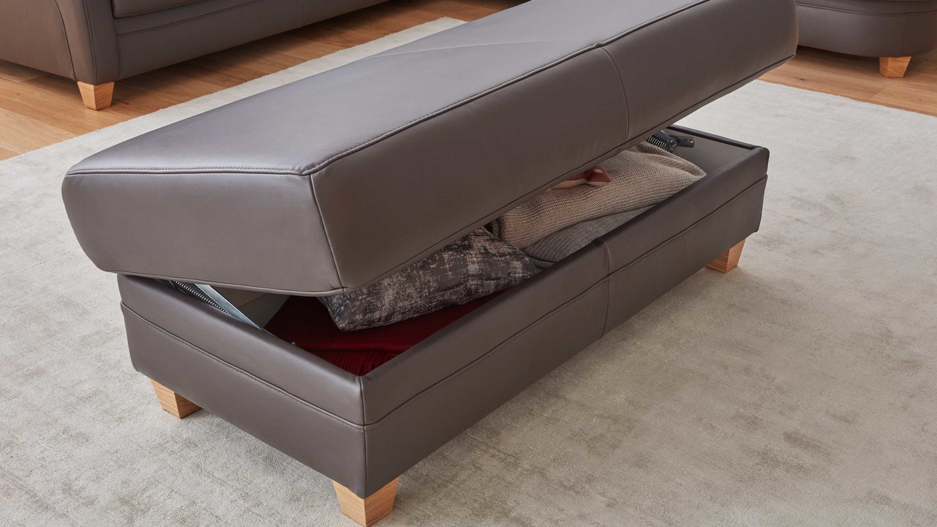 Beispielsweise profitieren Sie von einer großen Lederauswahl. Des Weiteren stehen Ihnen drei Fußvarianten aus Massivholz in sieben verschiedenen Farben zur Wahl. Hinzu kommen diverse, teilweise gegen Mehrpreis ergänzbare Funktionen. Die Serie trägt das Goldene M.