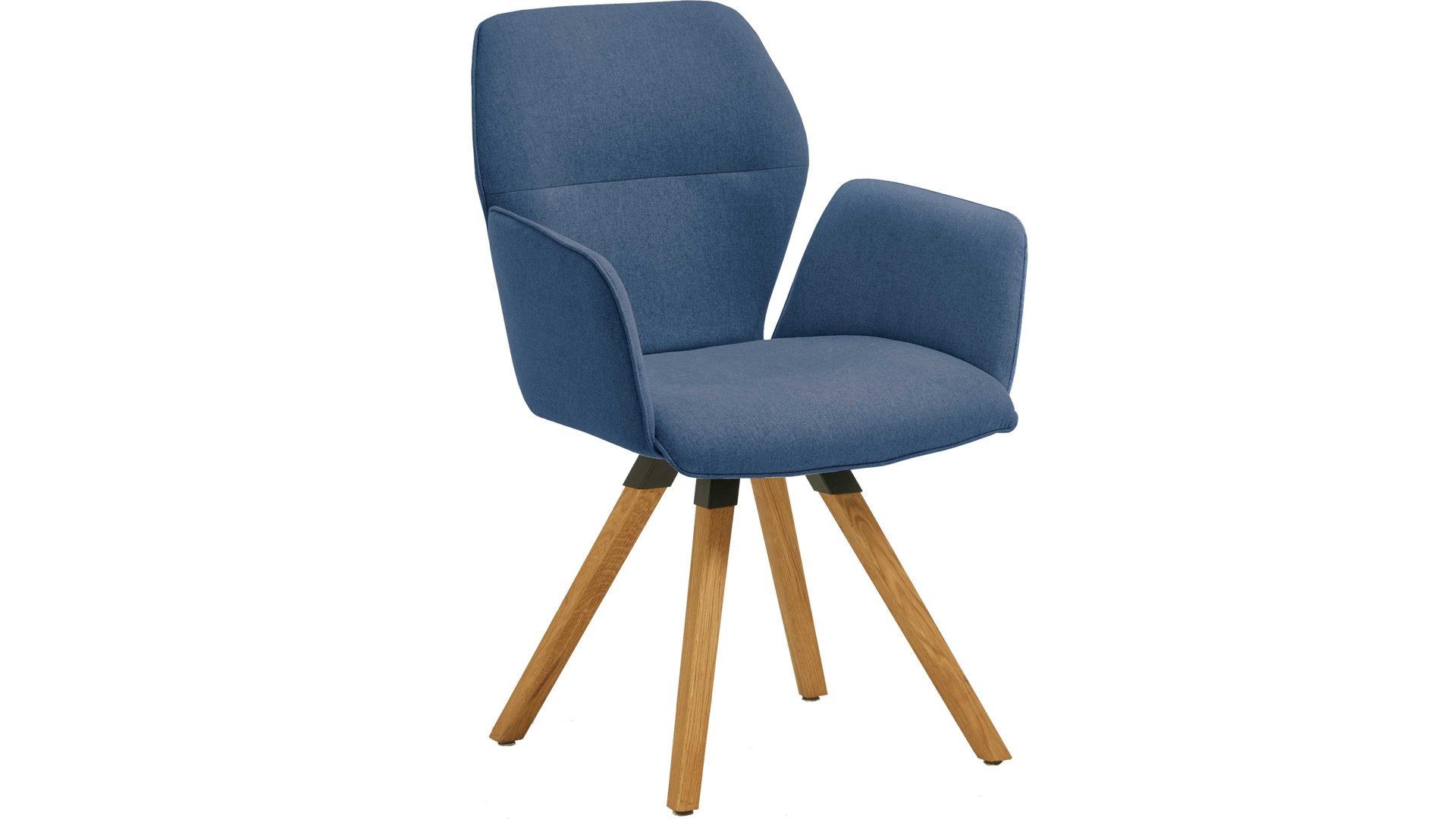 Der Armlehnstuhl Merlot präsentiert sich modern, kreativ und stilvoll designt. Er kombiniert einen blauen Webstoffbezug mit einem Stativ-Gestell aus massivem Wildeichenholz und schwarzen Akzenten. Das Echtholz sorgt für eine stabile Basis sowie für natürliches und warmes Flair im Esszimmer. Einen kühlen Kontrast erwirkt der tief-elegante Farbton des hochwertigen, angenehm weichen Stoffbezugs. Überdies unterstreicht die spezielle Formensprache des Gestells die originelle Ausstrahlung des Vierfußstuhls.
