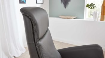 Das praktische Highlight des edlen Ledersessels bildet die manuelle Relaxfunktion: Indem Sie leichten Körperdruck anwenden, senkt sich der Rücken. Dabei geht der Sitz automatisch nach vorne und oben. Gleichzeitig fährt auch die Beinauflage nach oben, bis die Relaxposition erreicht ist.