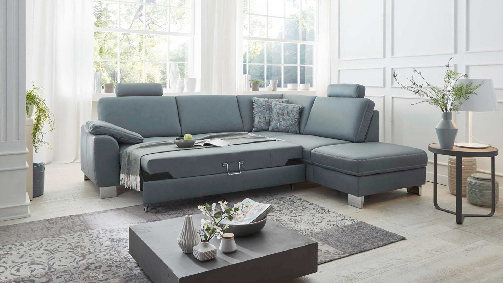 Beispielsweise sind die attraktiven Bezüge mit und ohne Kontrastnaht umsetzbar. Dazu stehen Ihnen sechs Fußvarianten zur Wahl. Des Weiteren sind zwei bequeme Sitzqualitäten preisgleich erhältlich: Federkern (fest) oder Kaltschaum (soft). Sie wählen überdies zwischen zwei preisgleichen Sitzhöhen und können optional mehrere manuelle oder motorische Funktionen ergänzen.