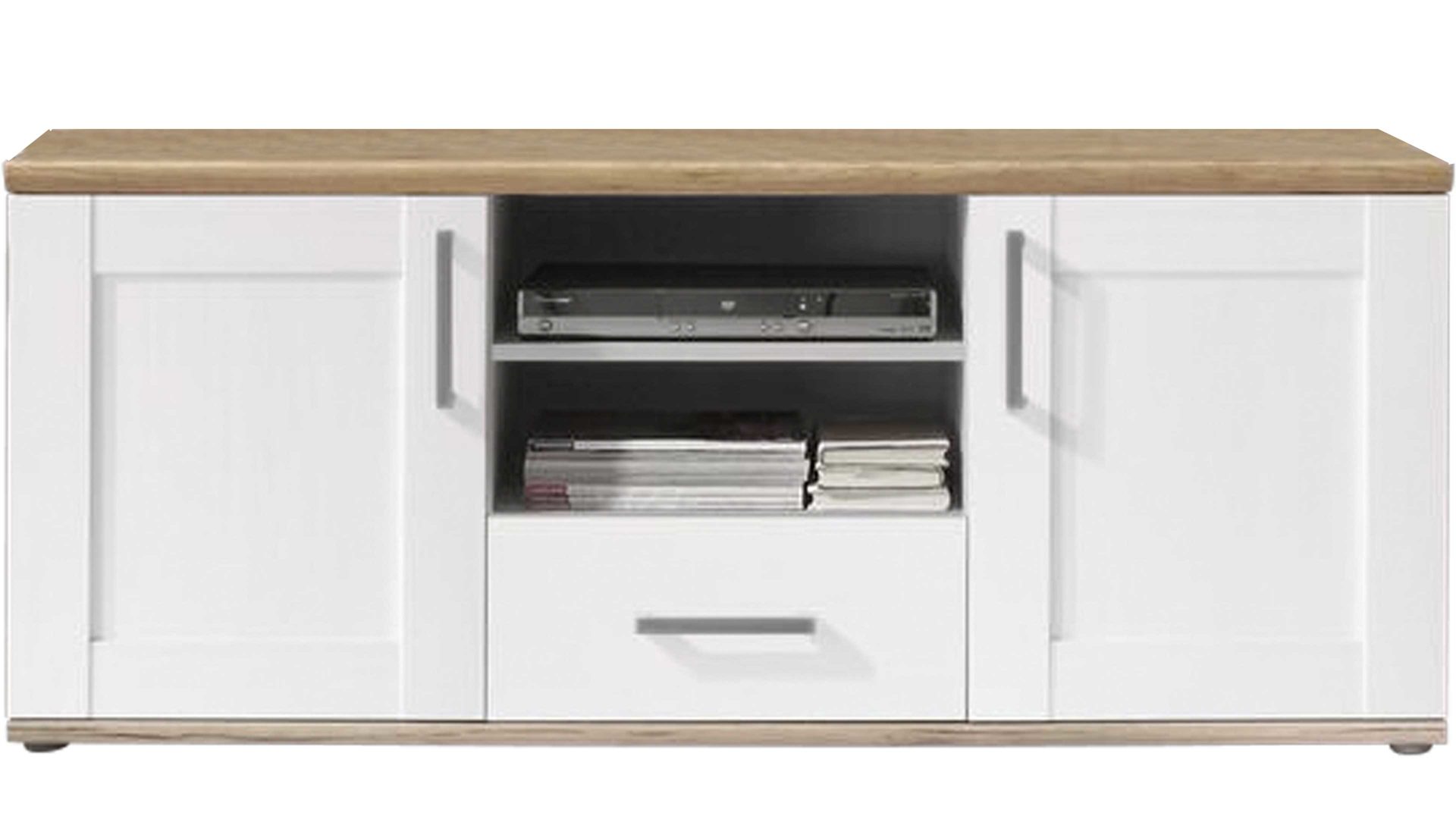 Herzstück der Schrankkombination ist ein zweitüriges Lowboard mit einer Schublade und zwei offenen Fächern, Maße ca. 143 x 59 x 50 cm (BxHxT), welches einen fixen Platz für Ihren Fernseher bereithält. Zusätzlichen Stauraum bekommen Sie durch ein zweitüriges Schrankelement mit drei Holzböden, Maße ca. 93 x 135 x 45 cm (BxHxT), welches der Wohnkombination hohe Funktionalität verleiht. Weitere Artikel der Serie sind mit der Produktnummer 620522-101 erhältlich.