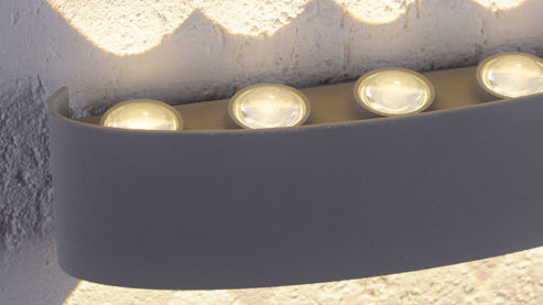 Außenlampe mit halbrundem Lampenschirm und Ausleuchtung nach oben und unten