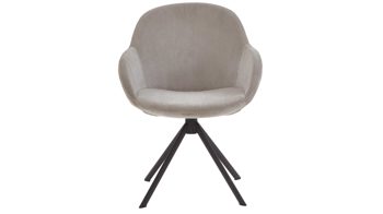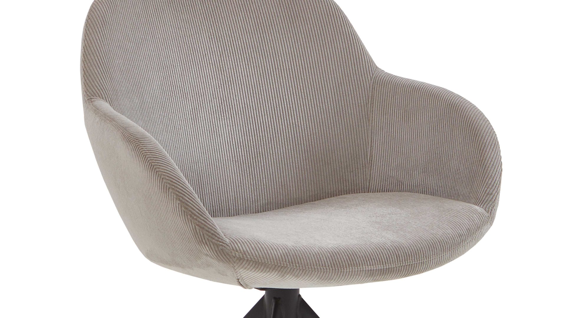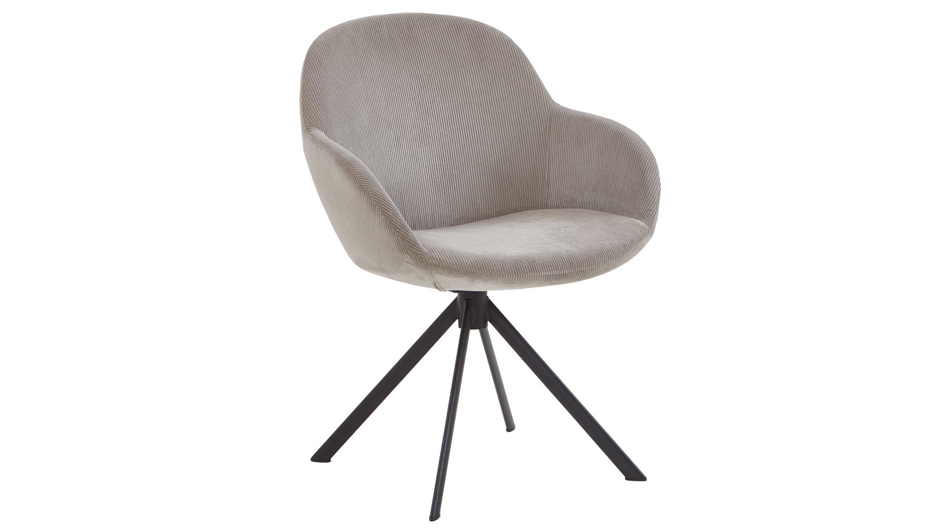 Der hochwertige NIEHOFF Armlehnstuhl Dacapo verkörpert moderne Eleganz und Gemütlichkeit. Mit dem mattschwarz lackierten Stativgestell aus robustem Eisen sowie dem trendigen grauen Cordbezug überzeugt er sowohl optisch als auch qualitativ. Dank der Ergo-Schale mit Formschaum bietet der Designerstuhl für das Esszimmer extra hohen Sitzkomfort.