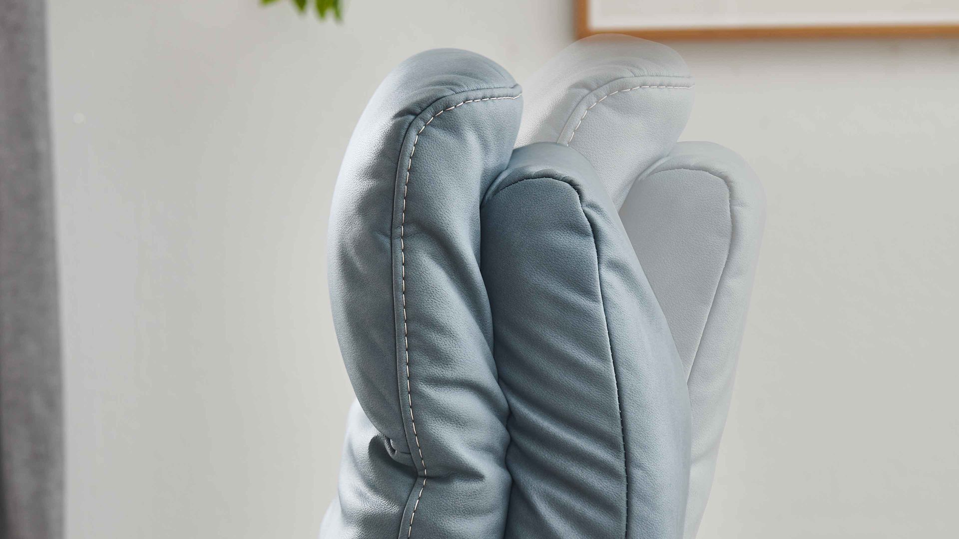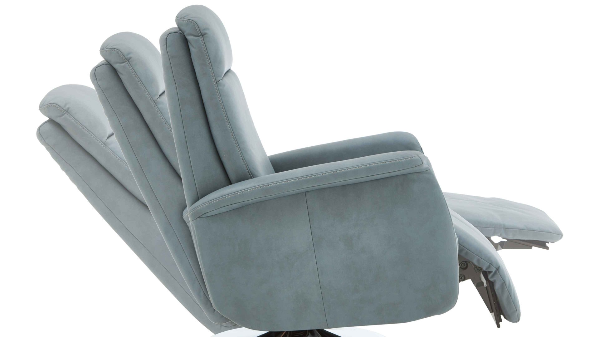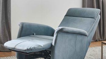 Weitere Teile der herrlichen Relaxfunktion sind die automatisch nach oben fahrende Beinauflage bis zur Liegeposition sowie die manuelle stufenlose Kopfpolsterverstellung mit Rasterbeschlag und Faltenoptimierung.