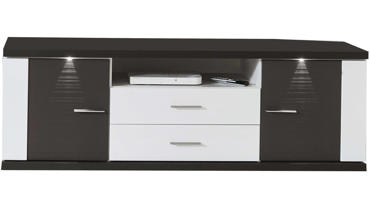 Tolles Lowboard für Ihr Zuhause: Mit arcticweißen Hochglanzfronten und Absetzungen mit graphitfarbener Kunststoffoberfläche besticht dieses raffinierte Medienelement als Wohnmöbel. Der Korpus verfügt über arcticweiße Melaminoberflächen, die nicht nur stoß- und kratzfest, sondern auch lichtbeständig sind. Das Medien-Lowboard bietet mit zwei Schubladen, und zwei Türen, hinter denen sich jeweils ein Holzboden verbirgt, jede Menge Platz für Ihre Unterhaltungselektronik.