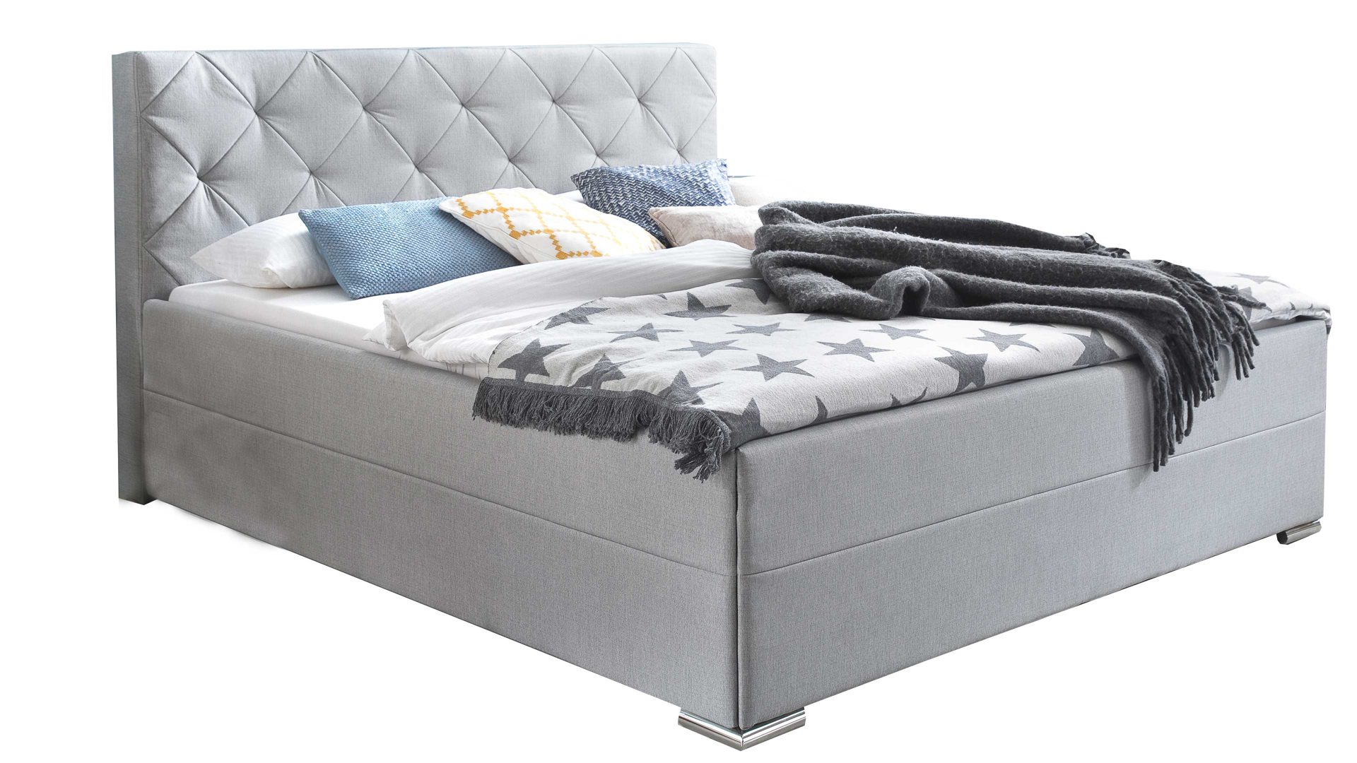 Das Polsterbettgestell Chicago verleiht Ihrem Schlafzimmer einen eleganten Charme. Sein hellgrauer Bezugsstoff Porto 31 bringt einen zeitlosen Stil mit. Perfekt darauf abgestimmt sind die edlen chromfarbenen Metallfüße. Dank dieser Gestaltung harmoniert das Bett mit verschiedensten Einrichtungsstilen.
