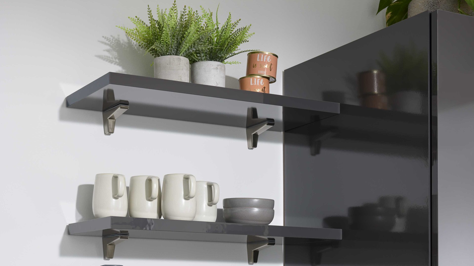 • Die Abbildung zeigt ein Wohnbeispiel, welches auch Dekoration sowie separat erhältliches Zubehör enthält. Im Lieferumfang enthalten sind eine Kücheninsel und eine Hochschranklösung.