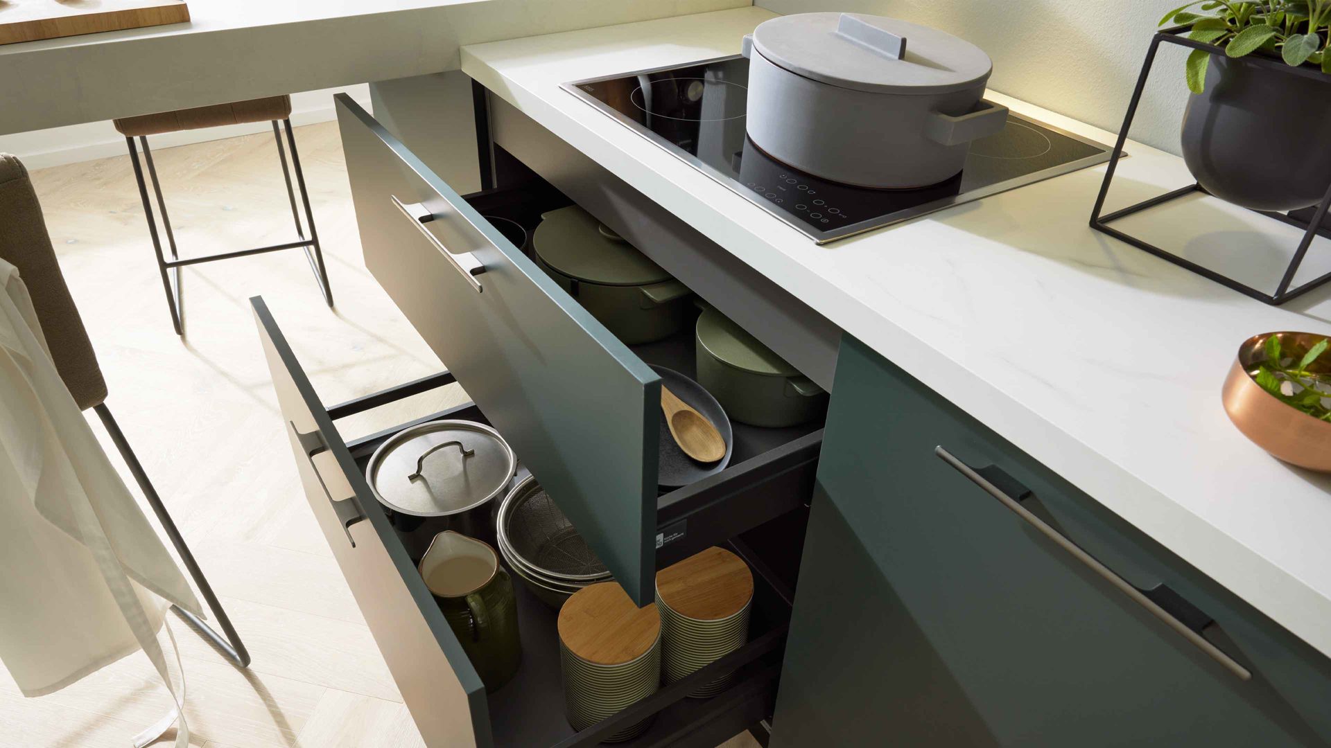 Die Interliving Küche Serie 3059 lässt sich flexibel an deine Wünsche anpassen und optional mit einem Geschirrspüler erweitern. Produziert in Deutschland, überzeugt sie durch erstklassige Verarbeitung, langlebige Materialien und modernes Design. Mit der 5 Jahre Herstellergarantie auf alle Möbelteile erhältst du zusätzlich ein starkes Qualitätsversprechen für deine neue Traumküche