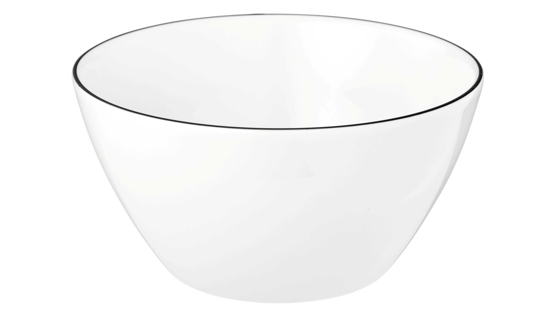 Seltmann Lido | runde Müslischale | weißes Hartporzellan mit filigranem schwarzen Rand | spülmaschinenfest | mikrowellengeeignet | stapelbar | backofenfest | Fassungsvermögen ca. 800 ml | Durchmesser ca. 15 cm, Höhe ca. 8 cm | Made in Germany | individuell kombinierbare Geschirrserie
