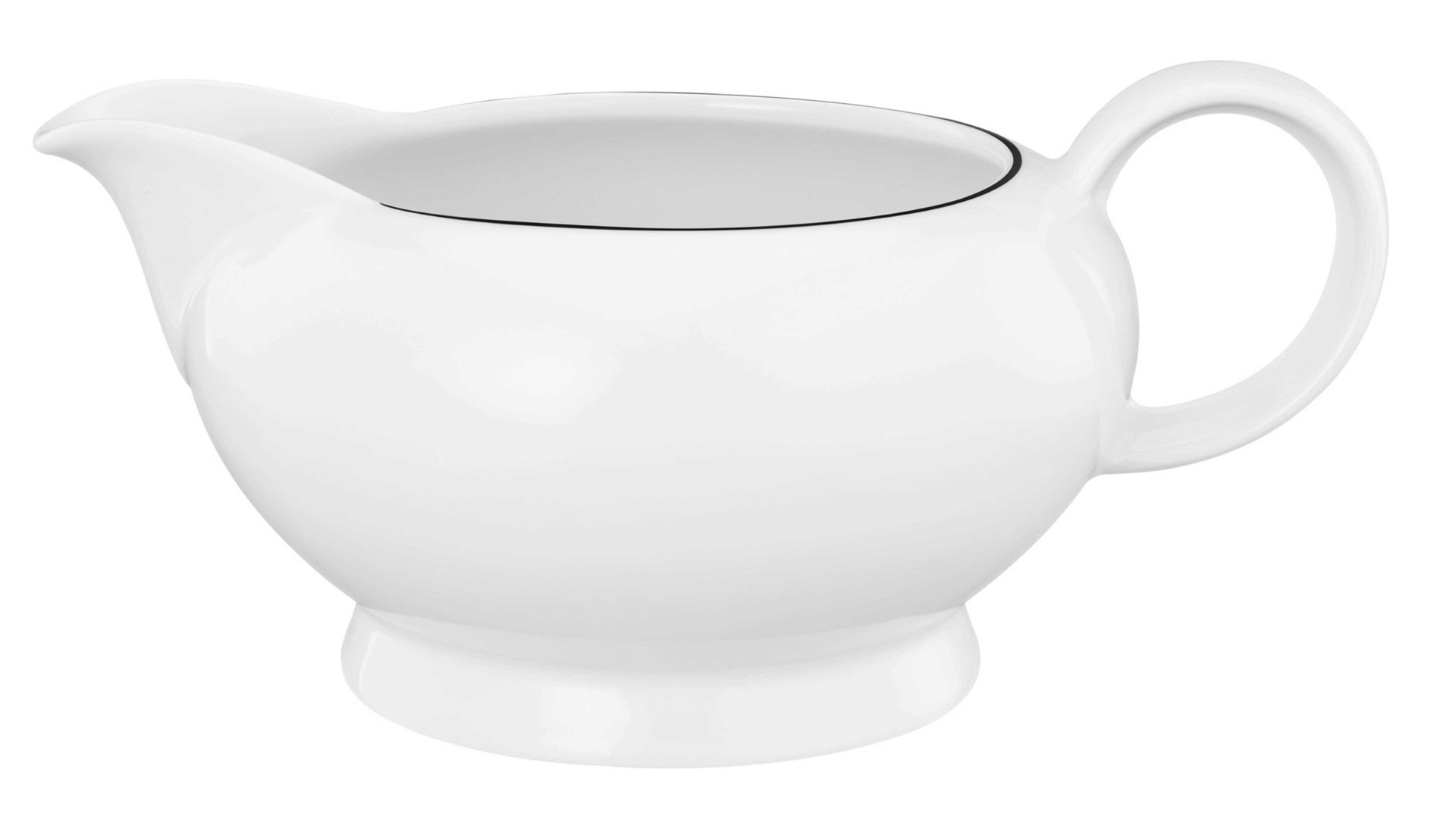 Seltmann Lido | Sauciere | weißes Hartporzellan mit filigranem schwarzen Rand | spülmaschinenfest | mikrowellengeeignet | Durchmesser ca. 19 cm | Fassungsvermögen ca. 500 ml | Maße ca. 13 x 9 x 18 cm (BxHxL) | Made in Germany | individuell kombinierbare Geschirrserie