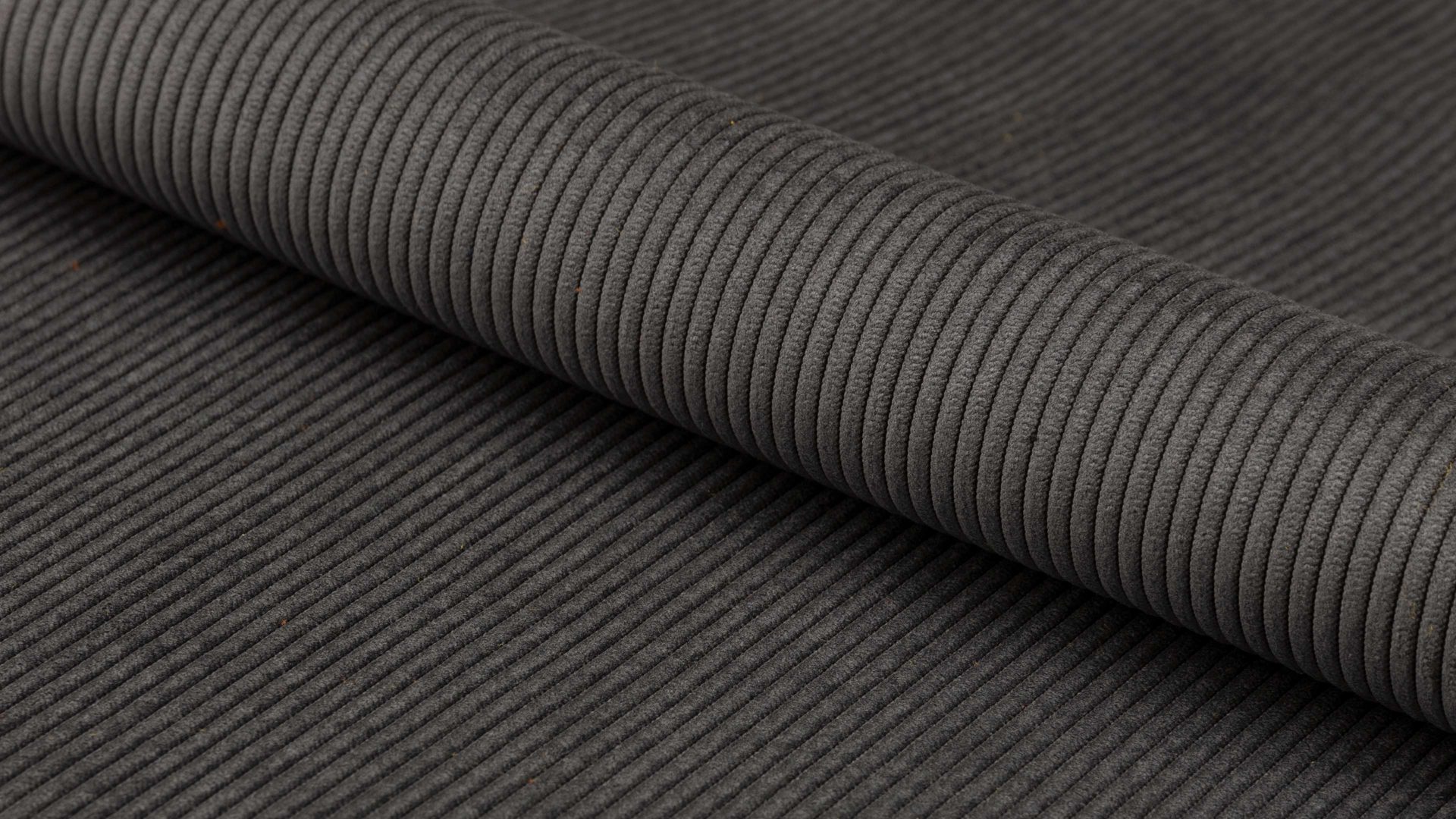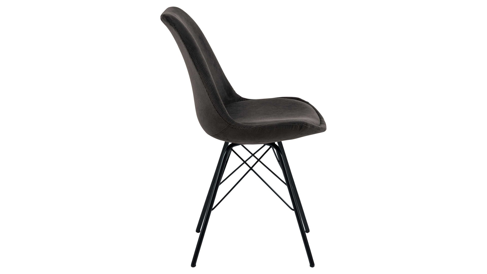 Als stabile, dabei aber wunderbar filigran designte Basis fungiert ein mattschwarz pulverbeschichtetes Stahldrahtgestell. Darauf befindet sich eine anthrazitfarbene Sitzschale aus robustem Kunststoff. Sie ist rundherum mit Feincord bezogen, ebenfalls in Anthrazit. Der angesagte Feincordbezug überzeugt sowohl qualitativ als auch optisch und haptisch.