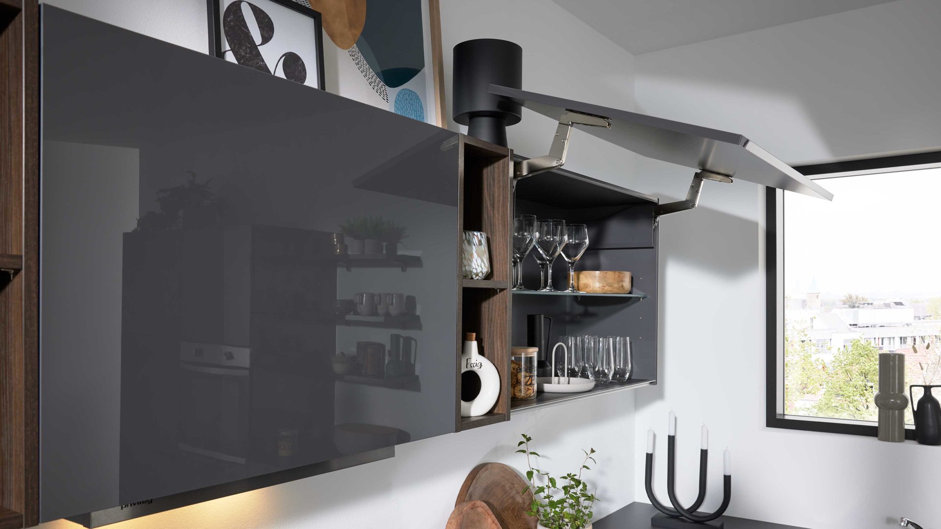 • Die Abbildung zeigt ein Wohnbeispiel, welches auch Dekoration sowie separat erhältliches Zubehör enthält. Im Lieferumfang enthalten sind eine Kücheninsel und eine Hochschranklösung.
