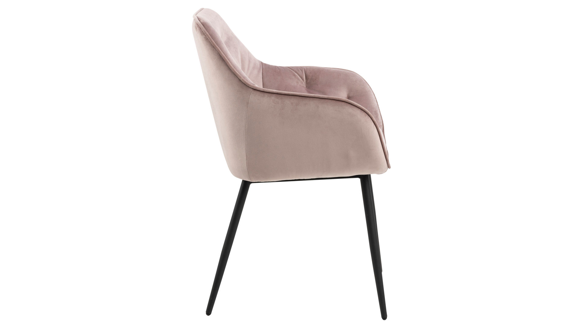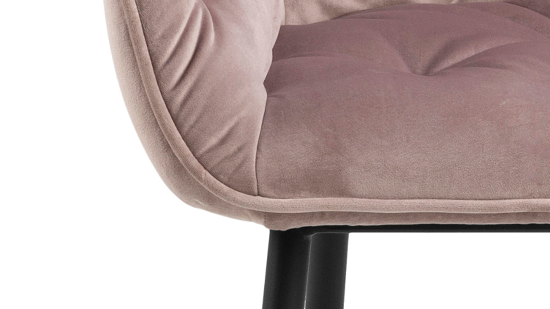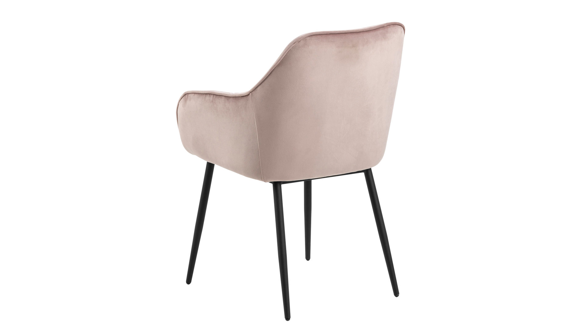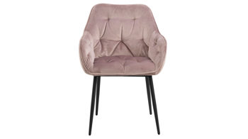 Dabei harmoniert der Polsterstuhl in seiner sanften Formensprache mit zahlreichen Einrichtungsstilen. Moderne Geradlinigkeit ergänzt er ebenso stimmig wie den beliebten Vintage-Trend. Auch farblich erlaubt der Esszimmerstuhl Brooke angenehme Freiheit beim Kombinieren: Dafür sorgt der Samtbezug in Pastellrosa, der die gesamte Sitzschale inklusive der bequemen Armlehnen weich umhüllt. Die rau pulverbeschichteten Metallfüße fließen in mattem Schwarz stimmig in das Gesamtbild ein.