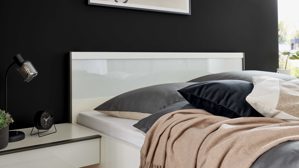 Klar, modern und funktional – das Bettgestell aus der Interliving Schlafzimmer Serie 1033 vereint stilvolles Design mit durchdachten Details für erholsamen Schlaf. Die weißen Oberflächen in Kombination mit einer weißen Glaseinlage im Kopfteil und den schieferfarbenen Metall-Winkelfüßen verleihen dem Bett eine elegante Leichtigkeit und schaffen ein modernes, harmonisches Ambiente in deinem Schlafzimmer.