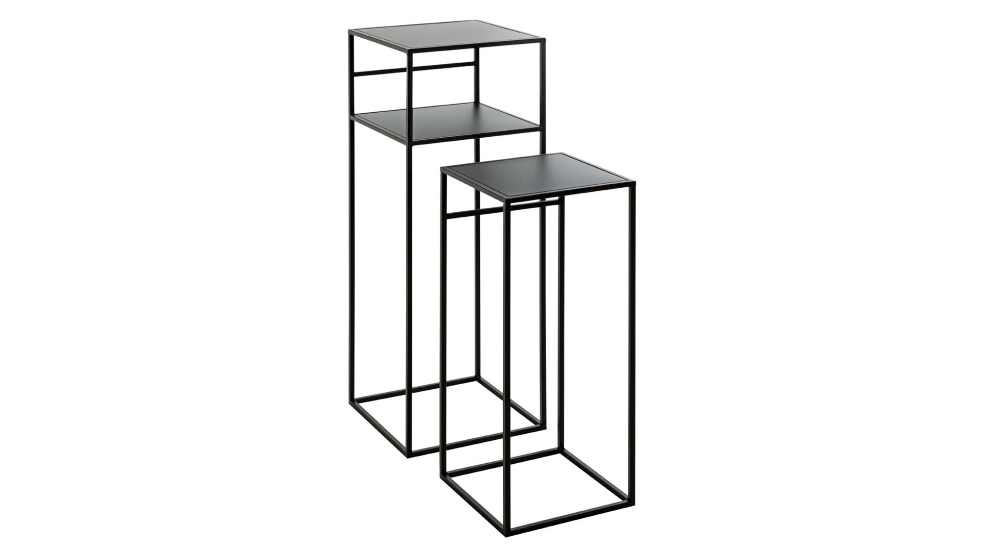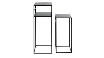 Dieses hochwertige Beistelltisch-Set repräsentiert die Eleganz schlichter Modernität. Aus klassisch mattschwarz lackiertem Metall einschließlich Vierkantrohr-Gestell gefertigt, erscheinen die zwei Beistelltische puristisch und sind dazu enorm robust und langlebig.