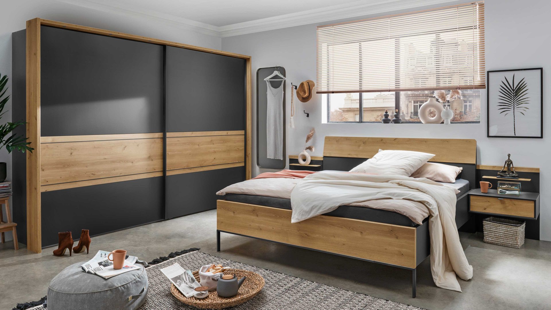 Graphit & Eiche Bianco - vierteilig, Liegefläche ca. 180 x 200 cm