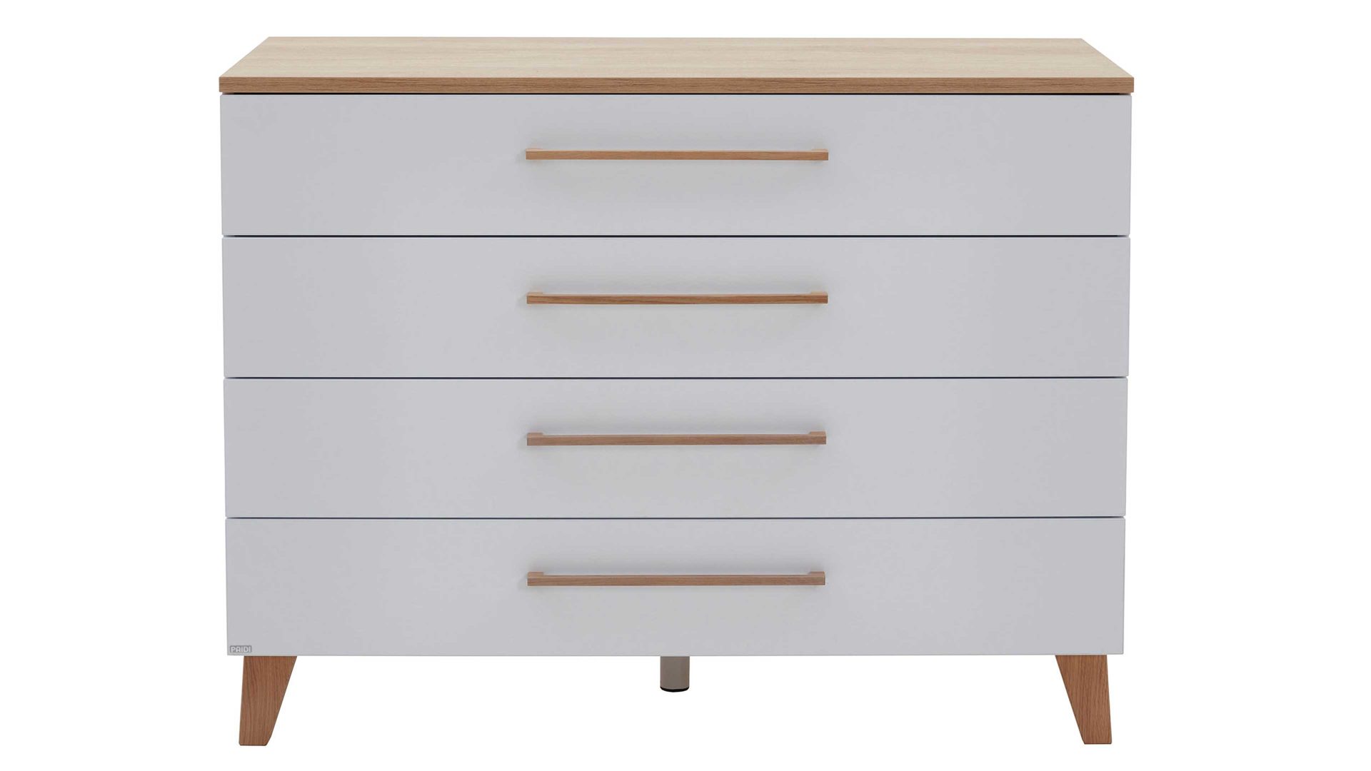 Kreideweiß & Nebraska Eiche – vier Schubladen