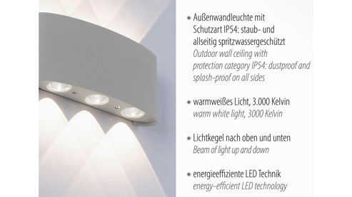 Außenlampe mit halbrundem Lampenschirm und Ausleuchtung nach oben und unten