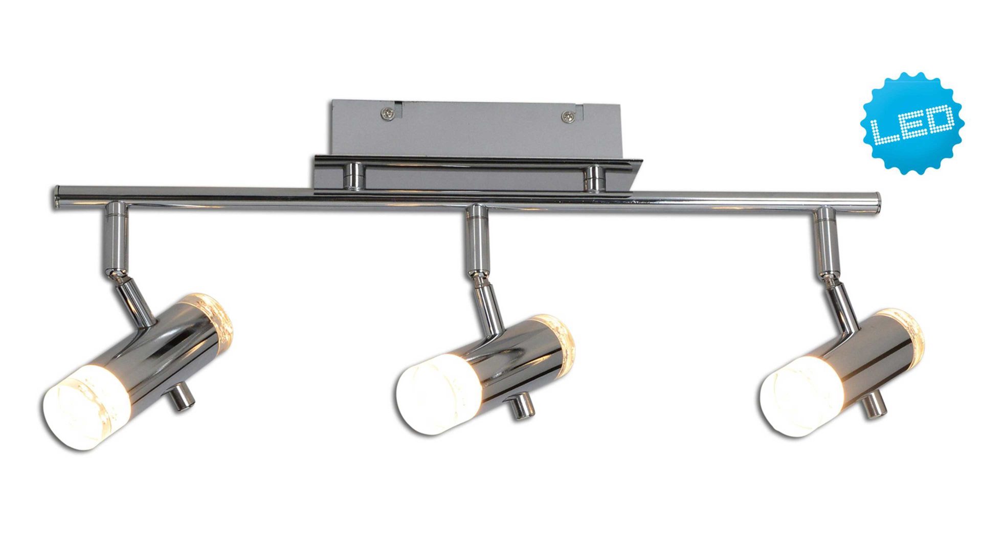 Er besteht aus verchromtem Metall sowie klarem Acrylglas. Somit ist die Deckenleuchte, die drei Spots aufweist, enorm widerstandsfähig, stabil und auch noch angenehm pflegeleicht.