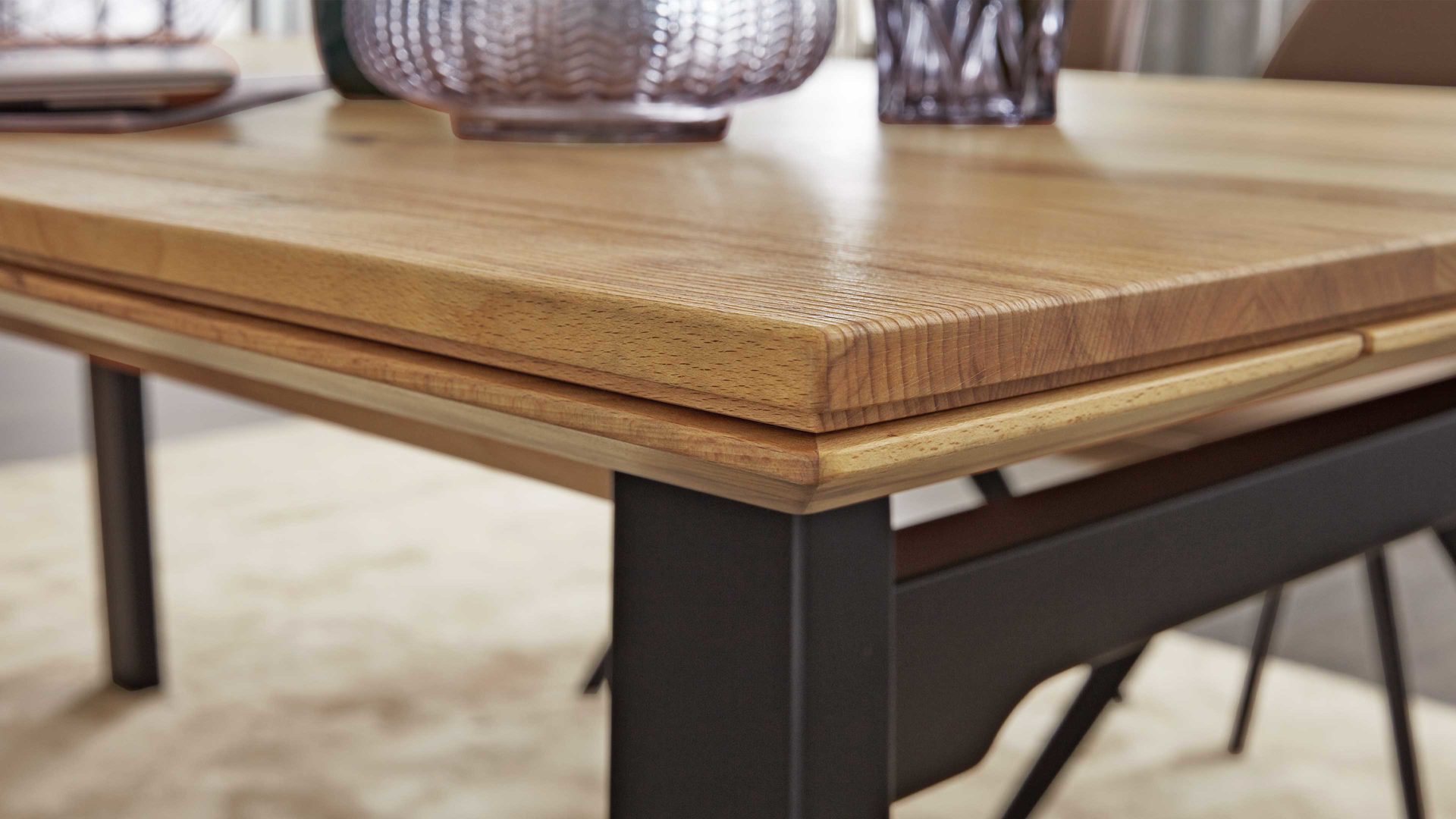 Dank des Zargenauszugs lässt sich der Tisch im Handumdrehen vergrößern. Die innenliegende Falteinlage mit ca. 50 cm Breite ist clever im Tisch verstaut und jederzeit griffbereit, ohne zusätzlichen Stauraum zu benötigen. Perfekt für spontane Gäste oder größere Runden. Mit Maßen von ca. 180–230 x 76 x 100 cm (B/LxHxT) bietet der Tisch im Alltag eine komfortable Größe und lässt sich bei Bedarf großzügig erweitern. Ideal für Familienessen, gesellige Abende oder größere Feierlichkeiten.
