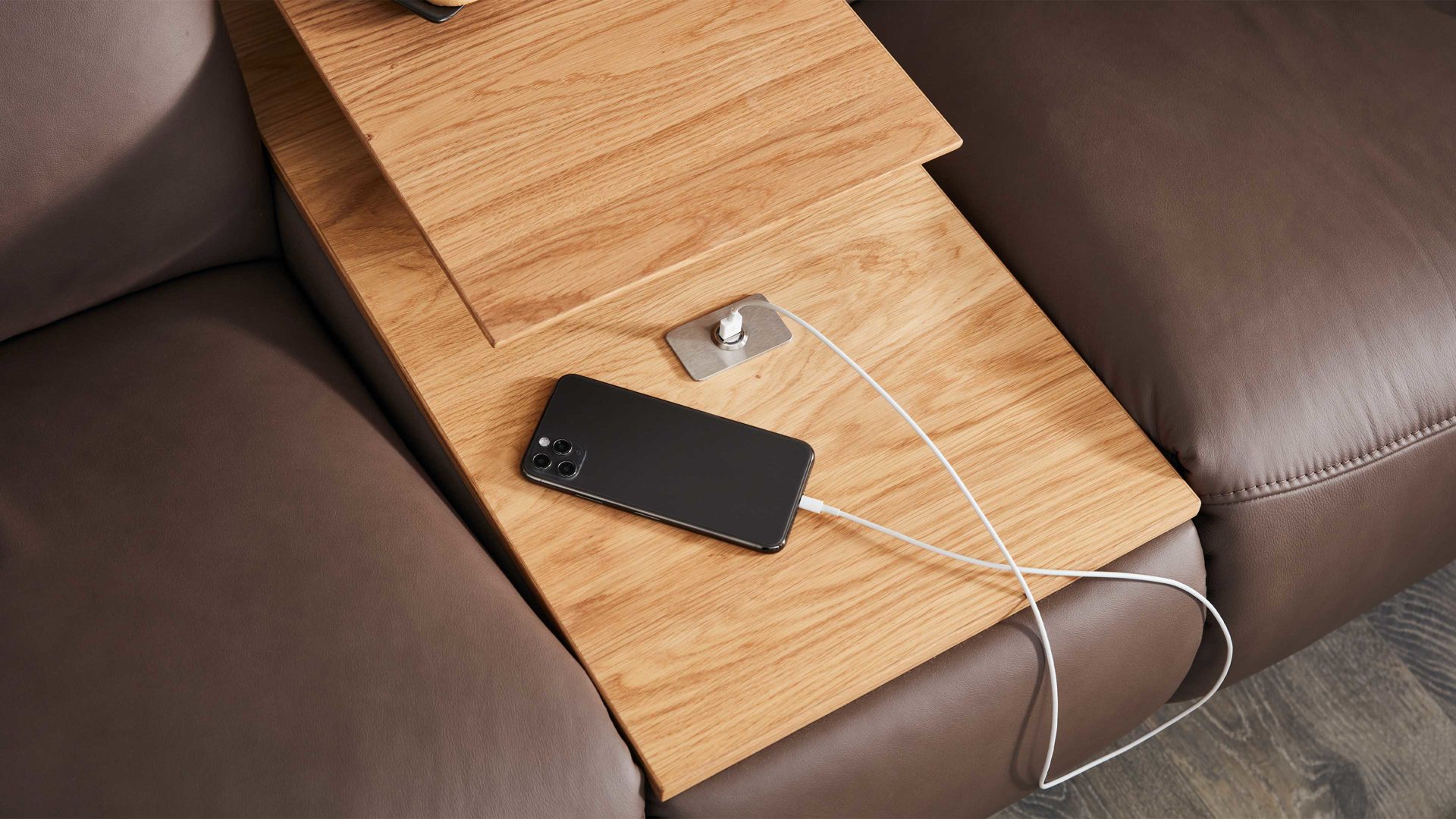 mit beleuchtetem Wildeiche-Zwischentisch inklusive praktischem USB-Anschluss