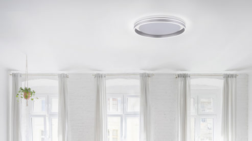 Wohnraumlampe mit zwei beleuchteten LED-Ringen