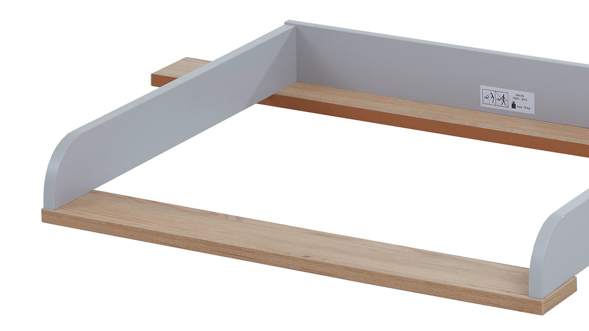 Der hochwertige PAIDI Wickelaufsatz Benne verbindet Montana-Eiche-Nachbildung mit kieselgrauen Melaminoberflächen. Letztere zeichnen sich vor allen Dingen durch ihre Lichtechtheit sowie die besonders ausgeprägte Kratz- und Stoßfestigkeit aus. Darüber hinaus sind sie sehr pflegeleicht. Der Holzton verströmt warmen, natürlichen Charme und harmoniert wunderbar mit dem Kieselgrau. Zusammen sorgen die Nuancen für eine moderne und elegante Optik.