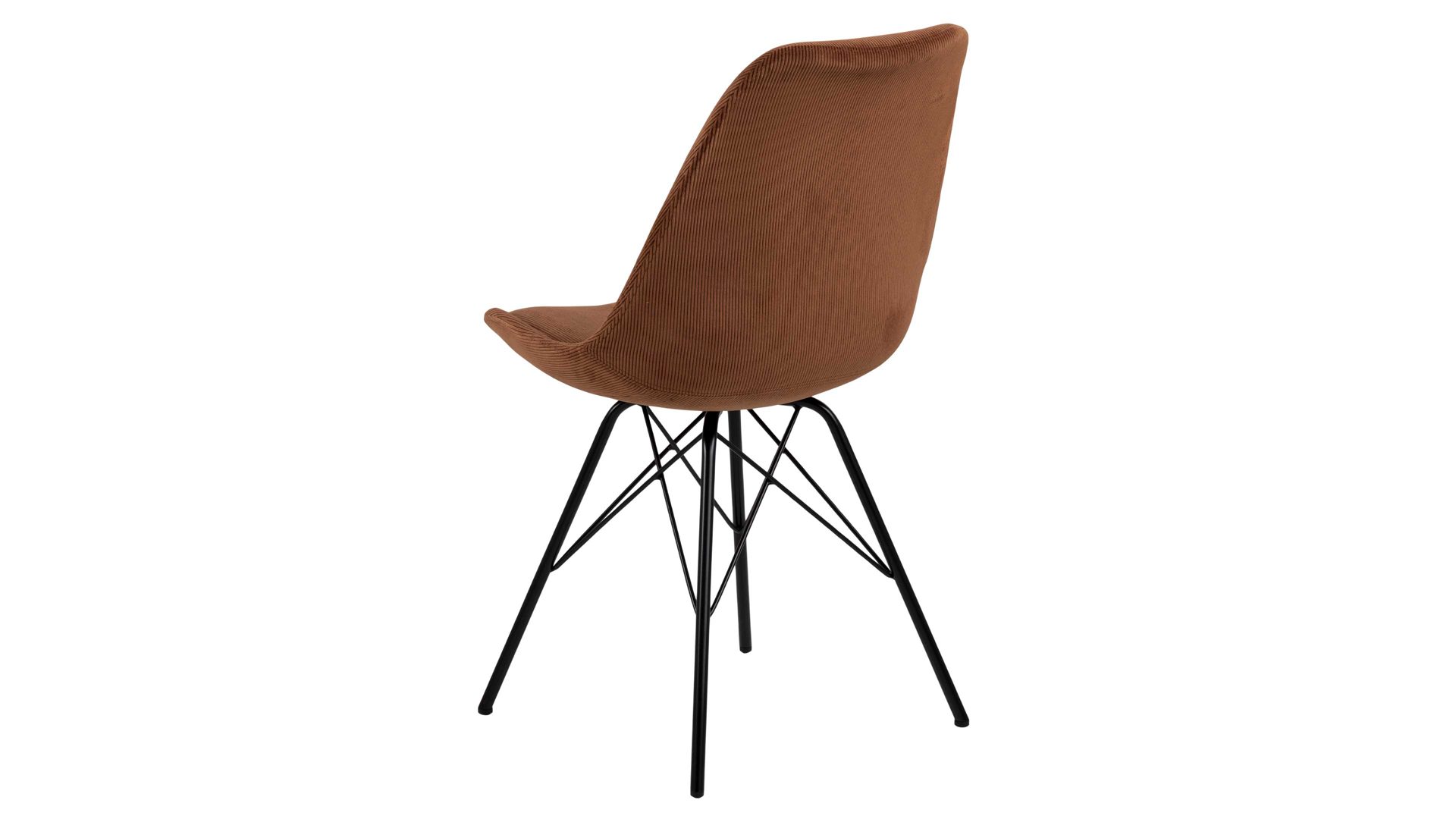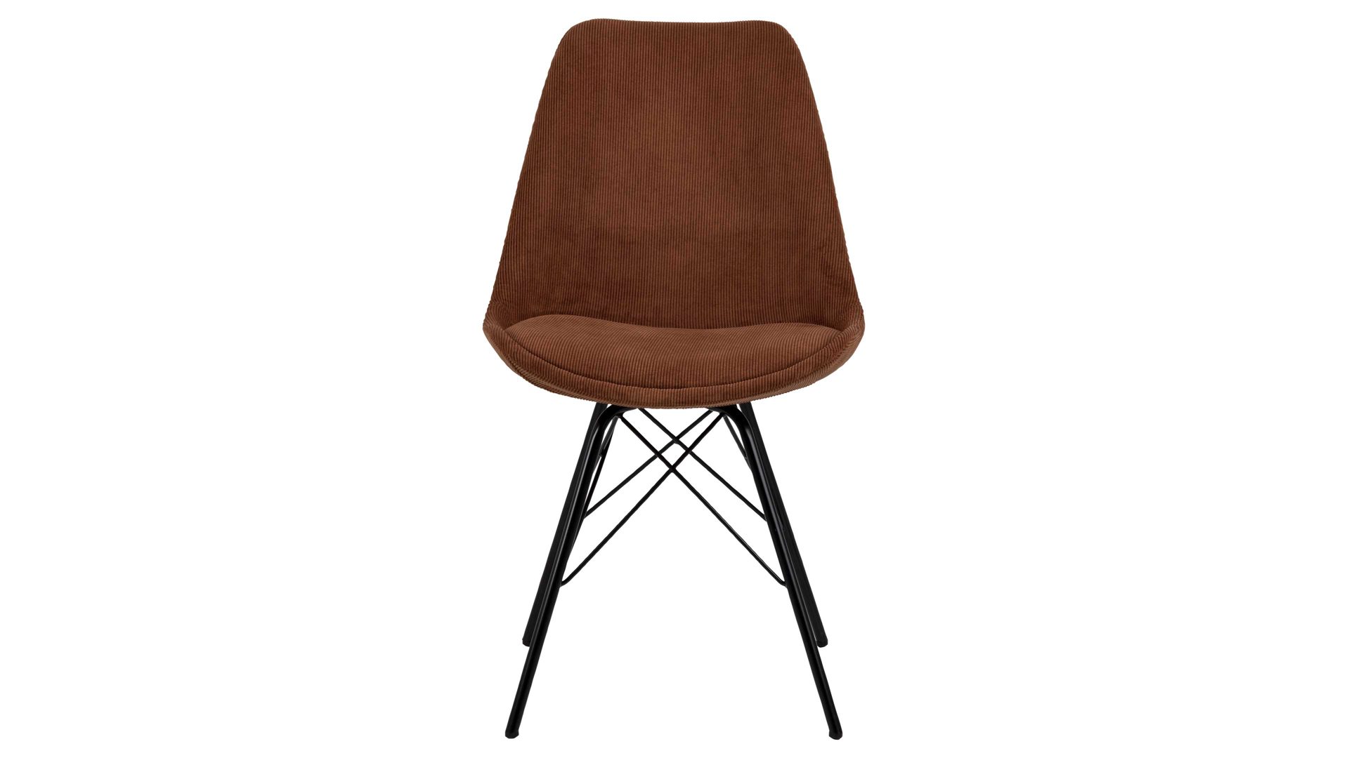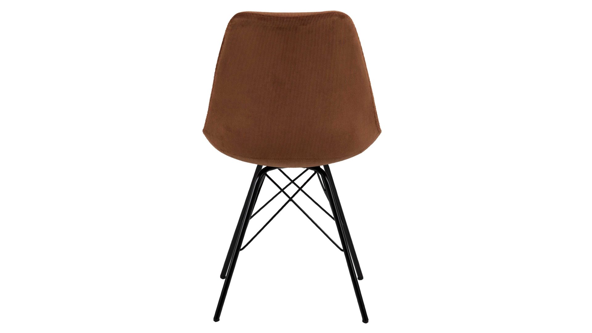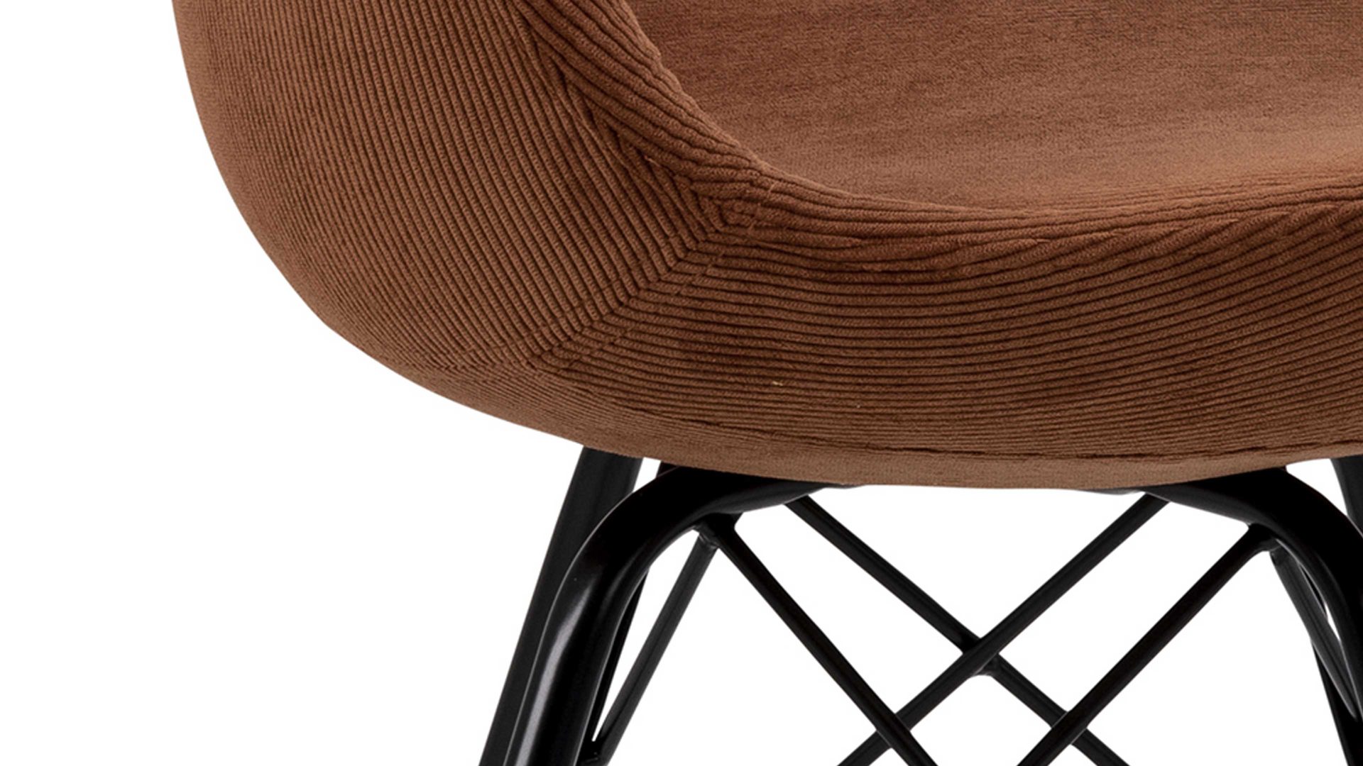 Als stabile, dabei aber wunderbar filigran designte Basis fungiert ein mattschwarz pulverbeschichtetes Stahldrahtgestell. Darauf befindet sich eine kupferfarbene Sitzschale aus robustem Kunststoff. Sie ist rundherum mit Feincord bezogen, ebenfalls in Kupfer. Der angesagte Feincordbezug überzeugt sowohl qualitativ als auch optisch und haptisch.