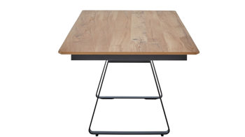 Dank mehrerer Individualisierungsmöglichkeiten können Sie den Esszimmertisch an Ihre Wünsche und Bedürfnisse anpassen. Zur Wahl stehen zwei stilvolle Gestellfarben und sieben unterschiedliche Plattenausführungen. Darüber hinaus ist der Tisch in vier verschiedenen Größen erhältlich. Optional lässt sich ein praktisches Frontauszugssystem mit Klappeinlage integrieren.