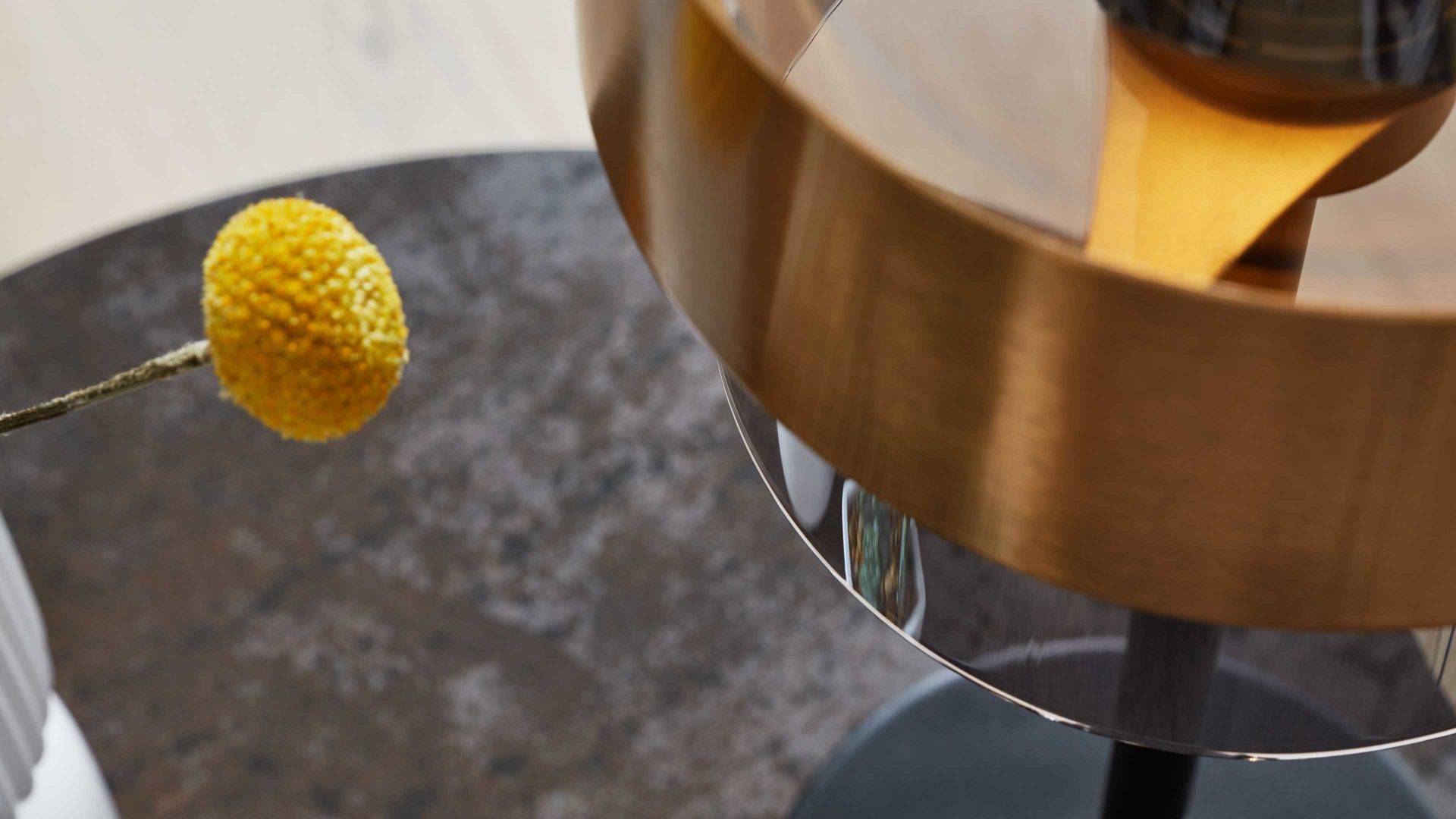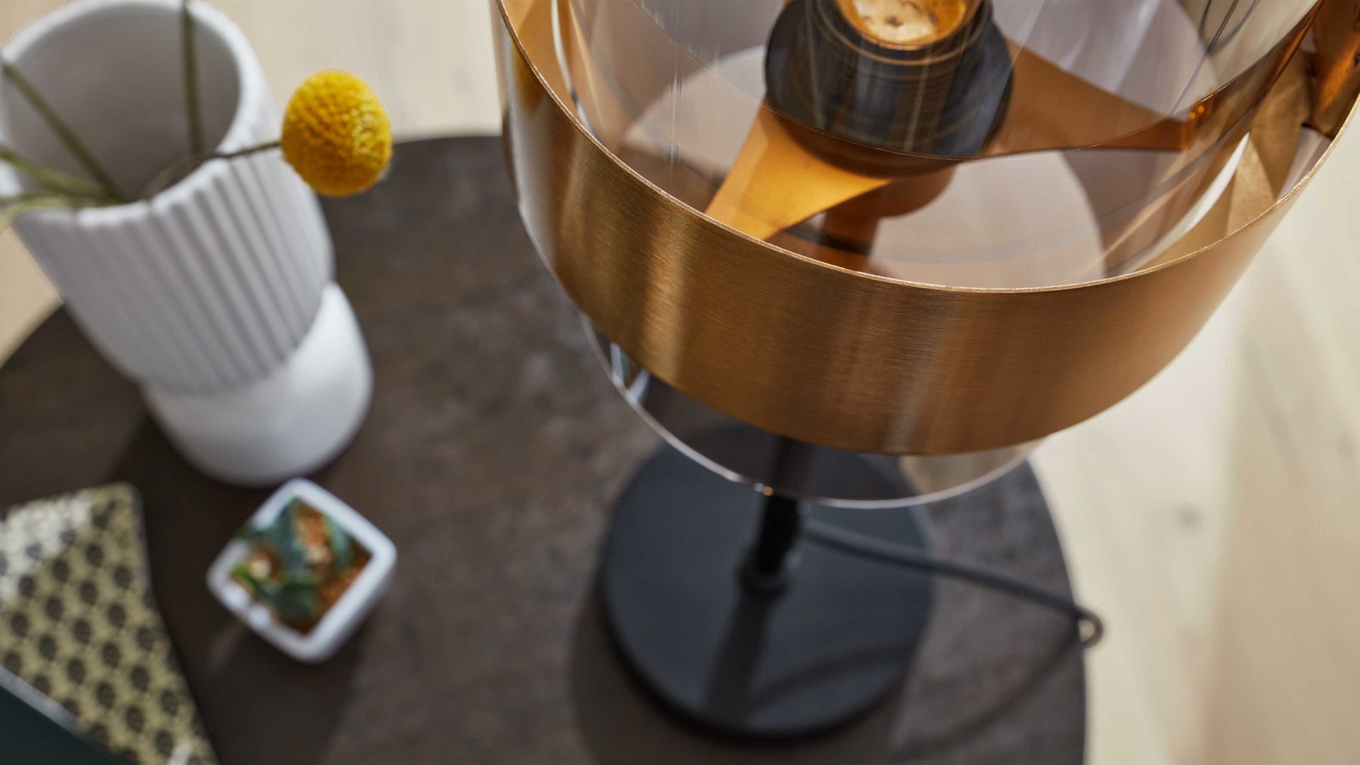 Die Tischleuchte aus der Interliving LeuchtenSerie 9333 vereint modernes Design mit einem Hauch Extravaganz und wird so zum stilvollen Blickfang auf Schreibtisch, Sideboard oder Nachttisch. Das Gestell aus klassisch mattschwarzem Metall harmoniert perfekt mit dem rauchfarbenen Glasschirm, der von einem gebürsteten messingfarbenen Metallring eingefasst ist. Diese elegante Kombination verleiht der Leuchte ihren besonderen Charakter und sorgt für ein warmes, wohnliches Lichtambiente.