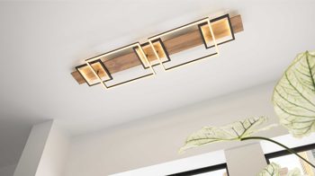 Die Deckenlampe aus der Interliving Leuchten Serie 9342 vereint modernes Design mit hochwertiger Verarbeitung. Eine gelungene Kombination aus dunkler Holznachbildung (MDF), mattschwarzem Aluminium und opalweißem Kunststoff verleiht der Leuchte ihren eleganten, zeitgemäßen Charakter. Die geometrische Gestaltung sorgt für eine harmonische, klare Optik und macht die Lampe zu einem stilvollen Blickfang in jedem Wohnraum.