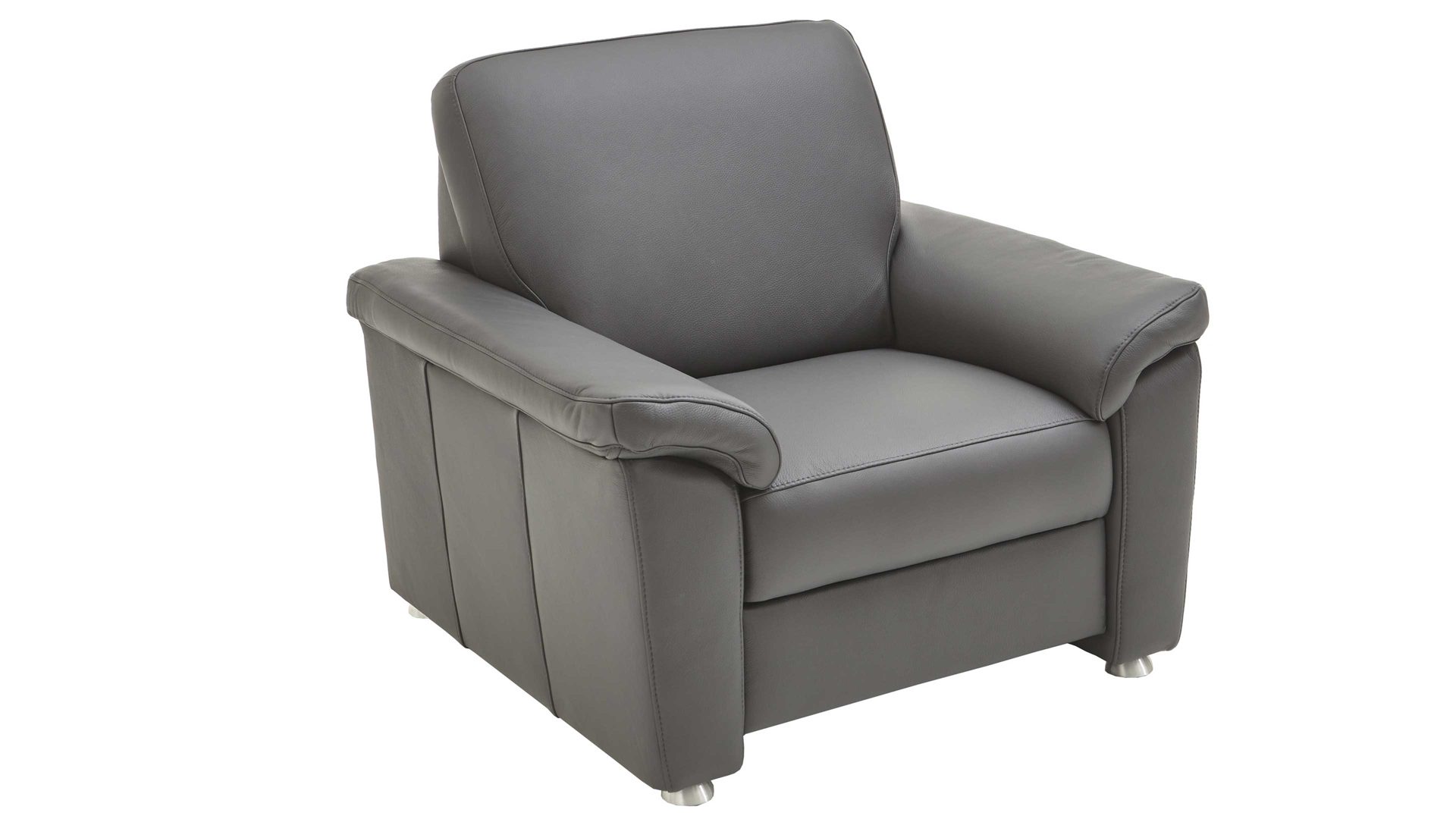 Der Polstersessel aus dem Modulmaster-Programm MM-PN1059 bringt moderne Eleganz und jede Menge Komfort in Ihr Wohnzimmer. Optisch begeistert der anthrazitfarben pigmentierte LongLife-Lederbezug mit Dicklederprägung. Er ist überdies pflegefreundlich und leicht zu reinigen. Matte Metallfüße runden das ansprechende Design stilsicher ab. Die Rückseite des Einzelsessels ist im Originalstoff bezogen.