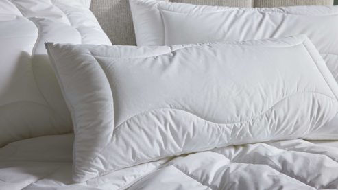 Der feine, weiße Bezug aus hochwertigem, gestepptem Edel-Batist Nm 100 (D) fühlt sich wunderbar glatt und weich an. Im Inneren steckt durchdachte Technologie: Die Füllung besteht außen aus superleichter Hollofil® Spring 3D-Markenfaser und im Kern aus hochbauschigem Faserflaum. Diese Kombination sorgt für ein elastisches, anschmiegsames Liegegefühl – mit optimaler Unterstützung für Kopf und Nacken.