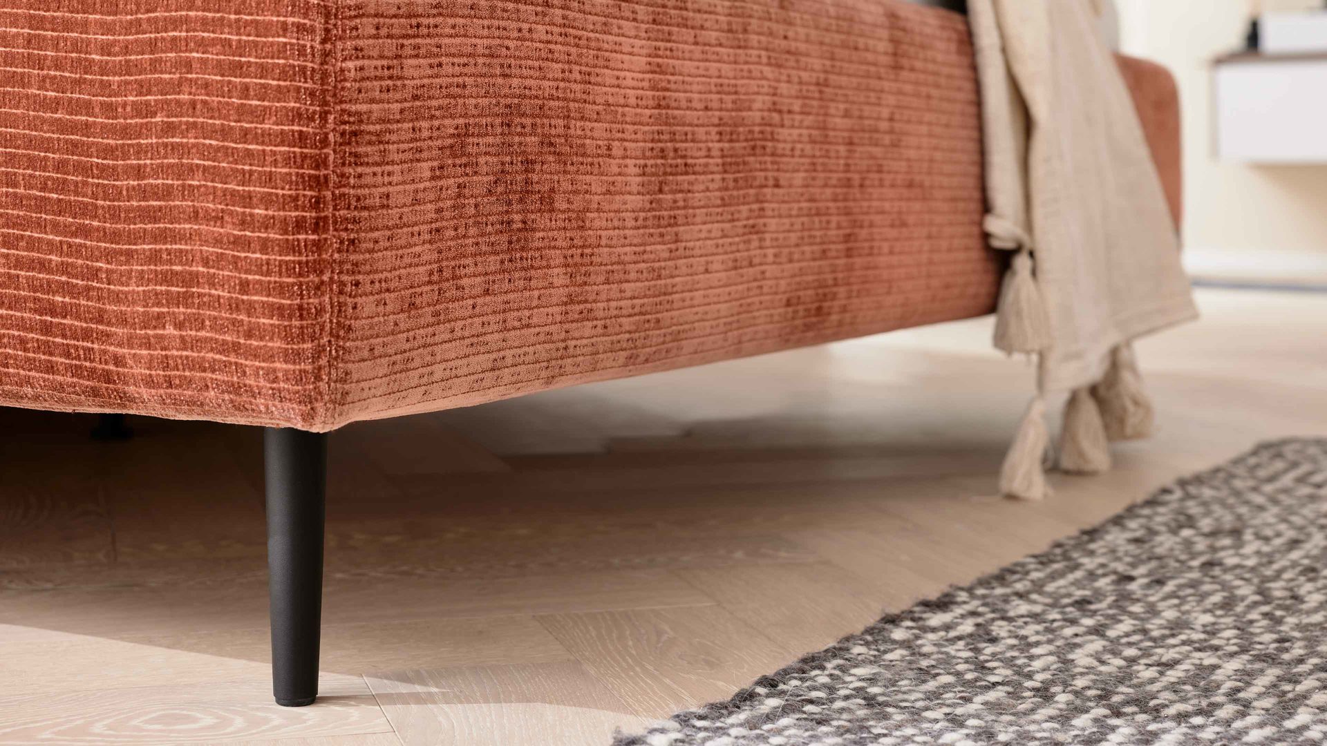 Für zusätzliche Designfreiheit sorgen elf Fußvarianten in unterschiedlichen Farben und Höhen – perfekt, um dein Bett auf deinen persönlichen Stil abzustimmen. Optional lässt sich das Bett auch mit einem praktischen Bettkasten ausstatten – ideal für Bettwäsche, Decken oder saisonale Textilien.