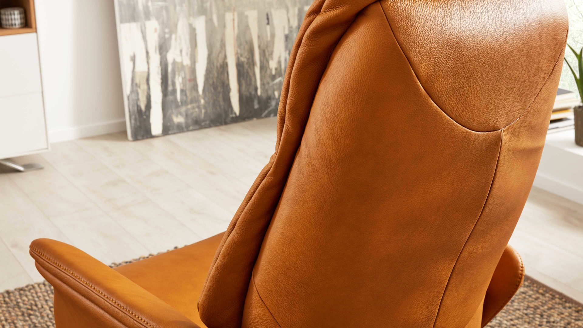 Der Relaxsessel aus der Interliving Sessel Serie 4550 steht für stilvolle Entspannung und höchste Funktionalität. Mit seinem kürbisfarbenen LongLife-Lederbezug und dem anthrazitfarben pulverbeschichteten Tellerfuß überzeugt der Sessel durch edle Optik, weichen Griff und langlebige Qualität – perfekt für ein modernes, hochwertiges Wohnambiente.