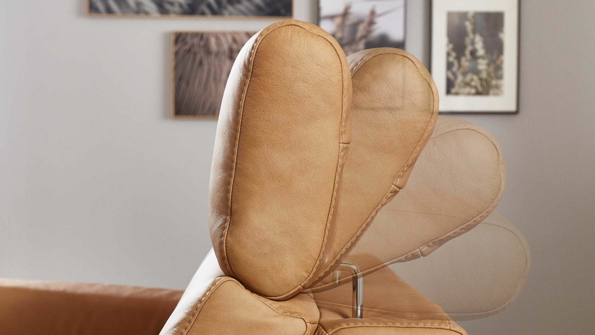 Die manuelle Kopfteilverstellung ist ein Funktions-Mehrpreis für die Sofas und Sessel aus dem hochwertigen Polsterprogramm OrthoSedis 6.0. Mittels Rasterbeschlag und Rückholfeder können Sie das Kopfteil verstellen und dessen Position stets an Ihre aktuellen Bedürfnisse anpassen.