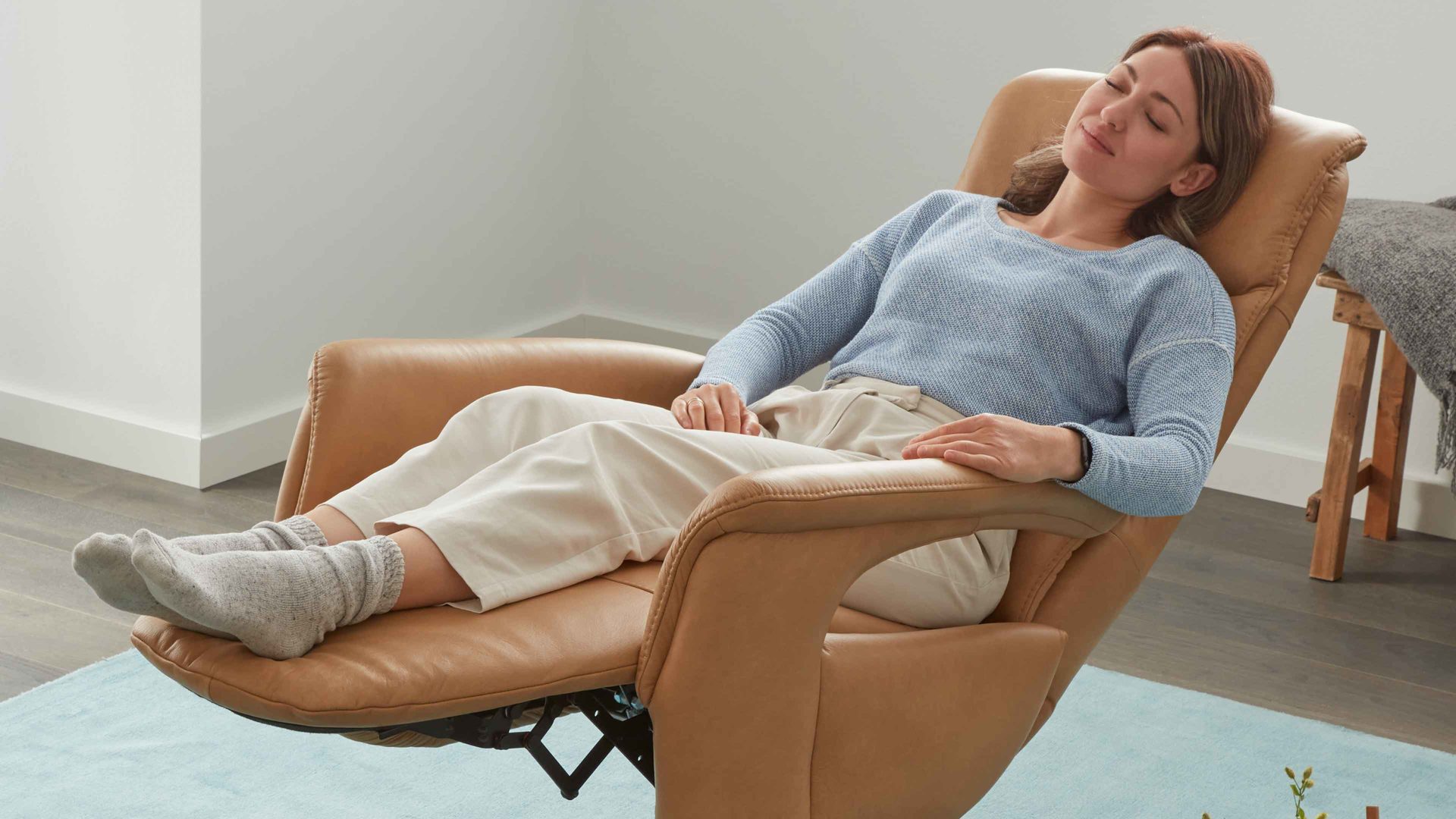 Das praktische Highlight des edlen Ledersessels bildet die manuelle Relaxfunktion: Indem Sie leichten Körperdruck anwenden, senkt sich der Rücken. Dabei geht der Sitz automatisch nach vorne und oben. Gleichzeitig fährt auch die Beinauflage nach oben, bis die Relaxposition erreicht ist.